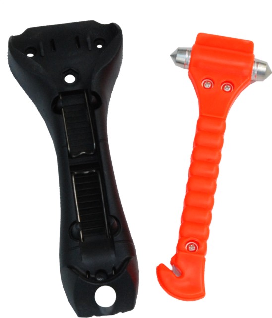 Набір безпеки складається з молотка для розбиття вікон та ножа для розрізання ременів безпеки