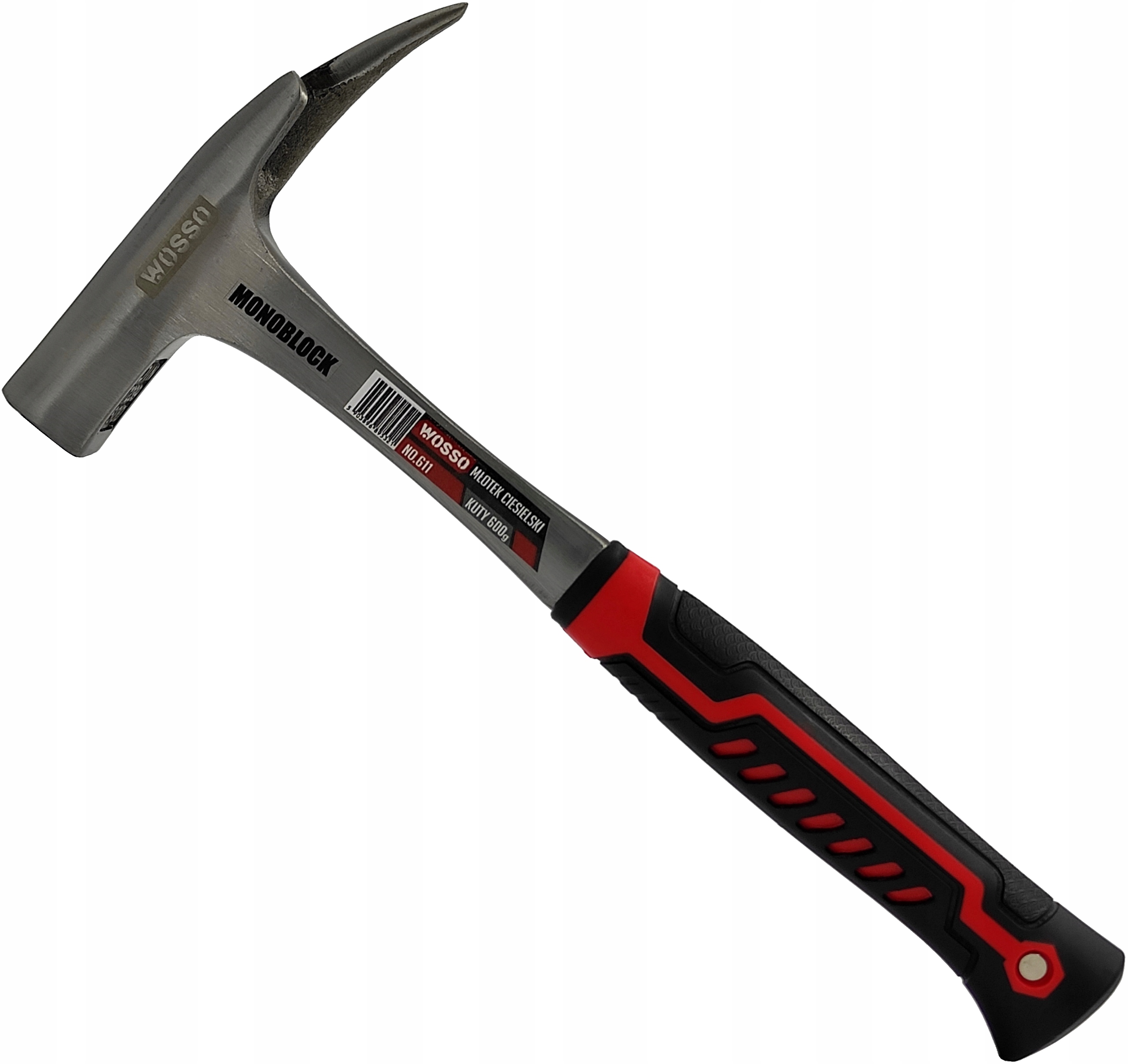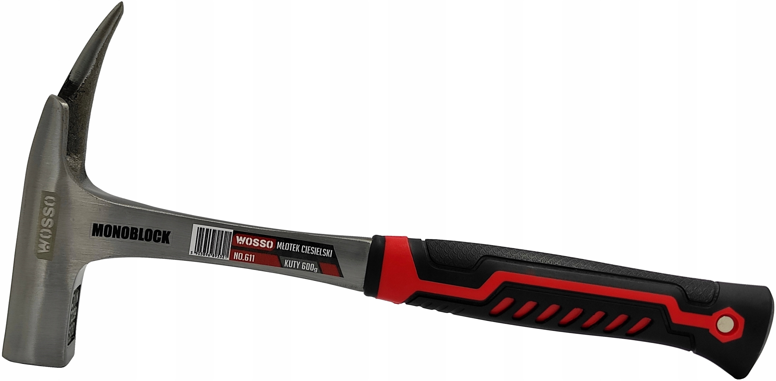 Молоток монолітний WOSSO NO.611 станенезамінним інструментомпри роботі:прибивати/виривати цвяхи, прибивати штукатурку, бити/розколювати тверді будівельні матеріали, ламати/трощити цеглу.