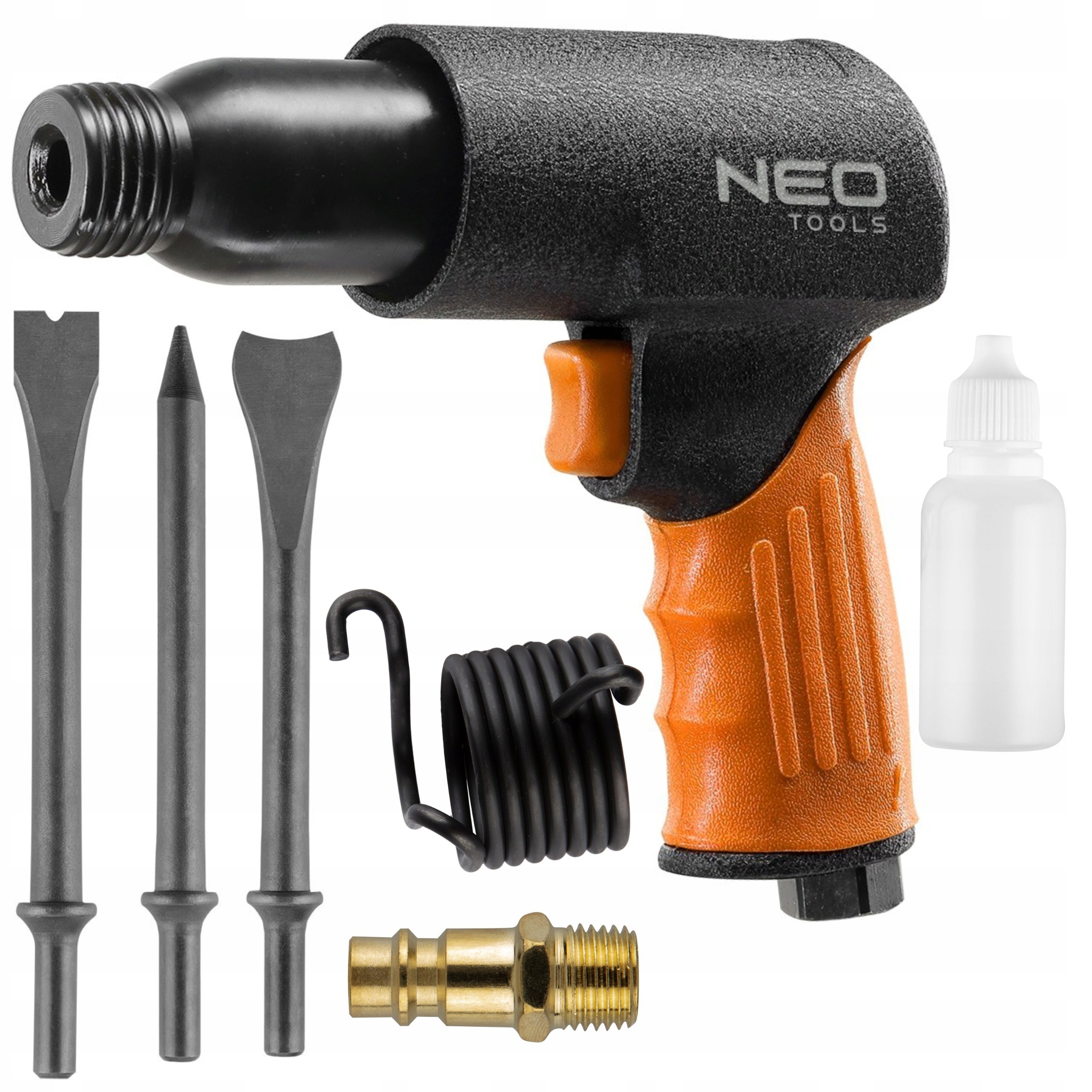 Пневматичний ударний молоток NEO (арт. № 14-028) відрізняється компактною конструкцією, що дозволяє працювати у важкодоступних місцях. Має пневматичний з'єднувач 1/4". Інструмент для універсального використання в майстерні для обробки листового металу, на будівництві для кування або сколювання. У комплекті: 5 стамесок: плоска 20 мм, плоска з канавкою 20 мм, дуга 22 мм, розрізний трикутник 20 мм, вістря 2 мм, з'єднання GZ 1/4" 1 шт., маслянка (порожня) 1 шт., пружина кріплення молотка 1 шт. Сертифікат CE підтверджує високу якість продукції. Торгова марка NEO відповідає очікуванням професіоналів.