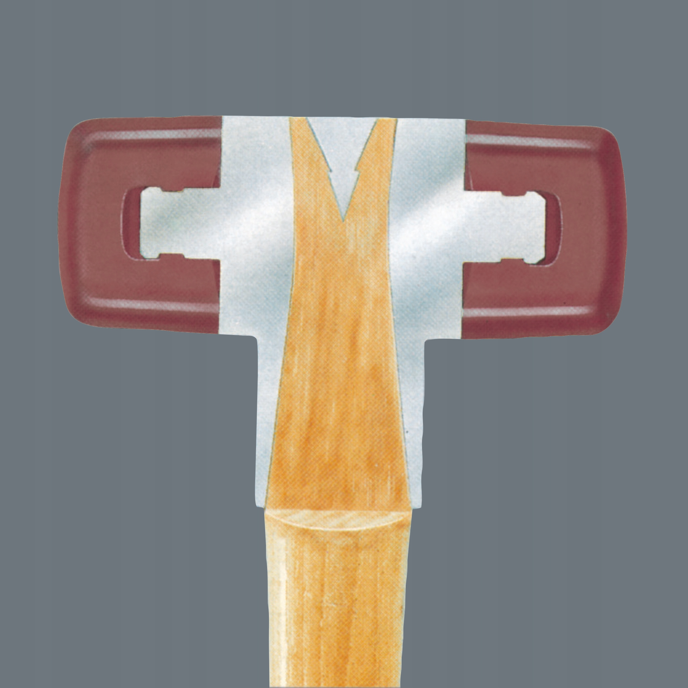 Молоток із пластиковою головкою: двосторонній конічний клин гарантує надійне та надійне з’єднання ручки та головки молоток. Уретанові головки середньої жорсткості. Ручка виготовлена з високоякісного ясена. Універсальне використання завдяки змінним пластиковим головкам. Для кузовних робіт, автомеханіки, машинобудування.