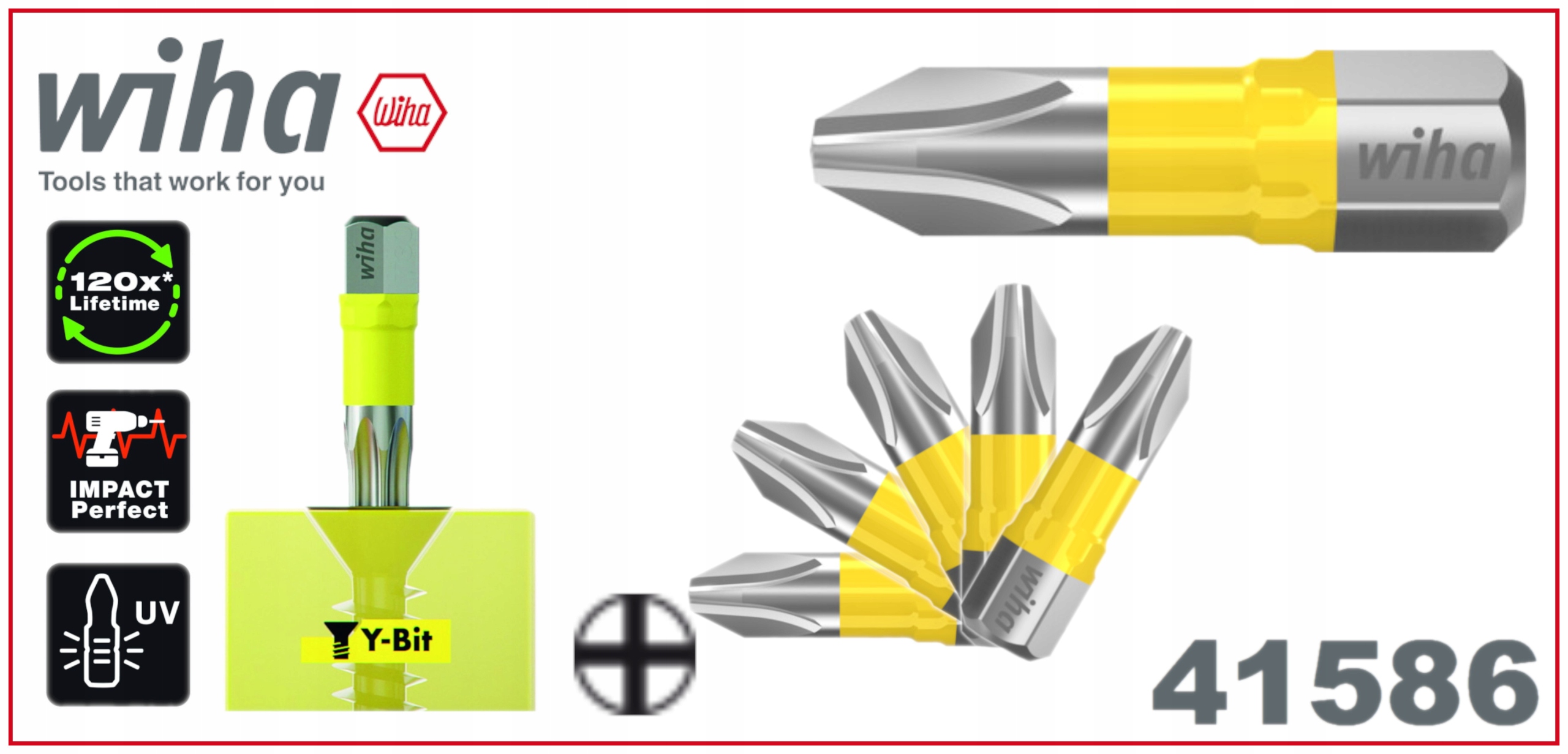 Напевно, досі, купуючи біти, ви задавалися питанням, для чого вони використовуються для даного типу бітів. Wiha кладе цьому край і полегшує процес відбору. Завдяки революційній концепції насадки Wiha тепер важлива лише форма головки гвинта, яка відіграє ключову роль у виборі насадки. Наприклад, біта "Y" ідеальна для гвинтових з'єднань, виконаних за допомогою Y-подібних гвинтів з кутом між різьбою та головкою, відмінним від 90°. Запатентована розширена торсійна зона робить біту також придатною для ударних викруток, забезпечуючи в 120 разів довший термін служби порівняно зі стандартними бітами Wiha. Крім того, завдяки люмінесцентному лаковому покриттю ви зможете швидко і легко знайти кольорові шматочки навіть у темряві за допомогою УФ-лампи. Це зменшує кількість втрачених бітів і, таким чином, заощаджує непотрібні витрати.