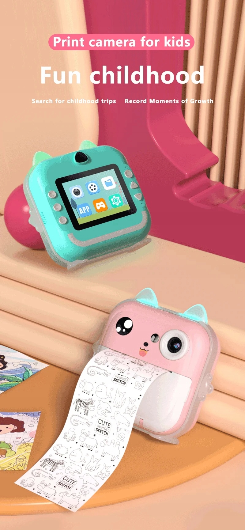 - Миттєвий друк: завдяки функції термодруку фотографій діти можуть друкувати свої фотографії відразу після зйомки їх, дозволяючи вам миттєво ділитися ними з родиною та друзями.