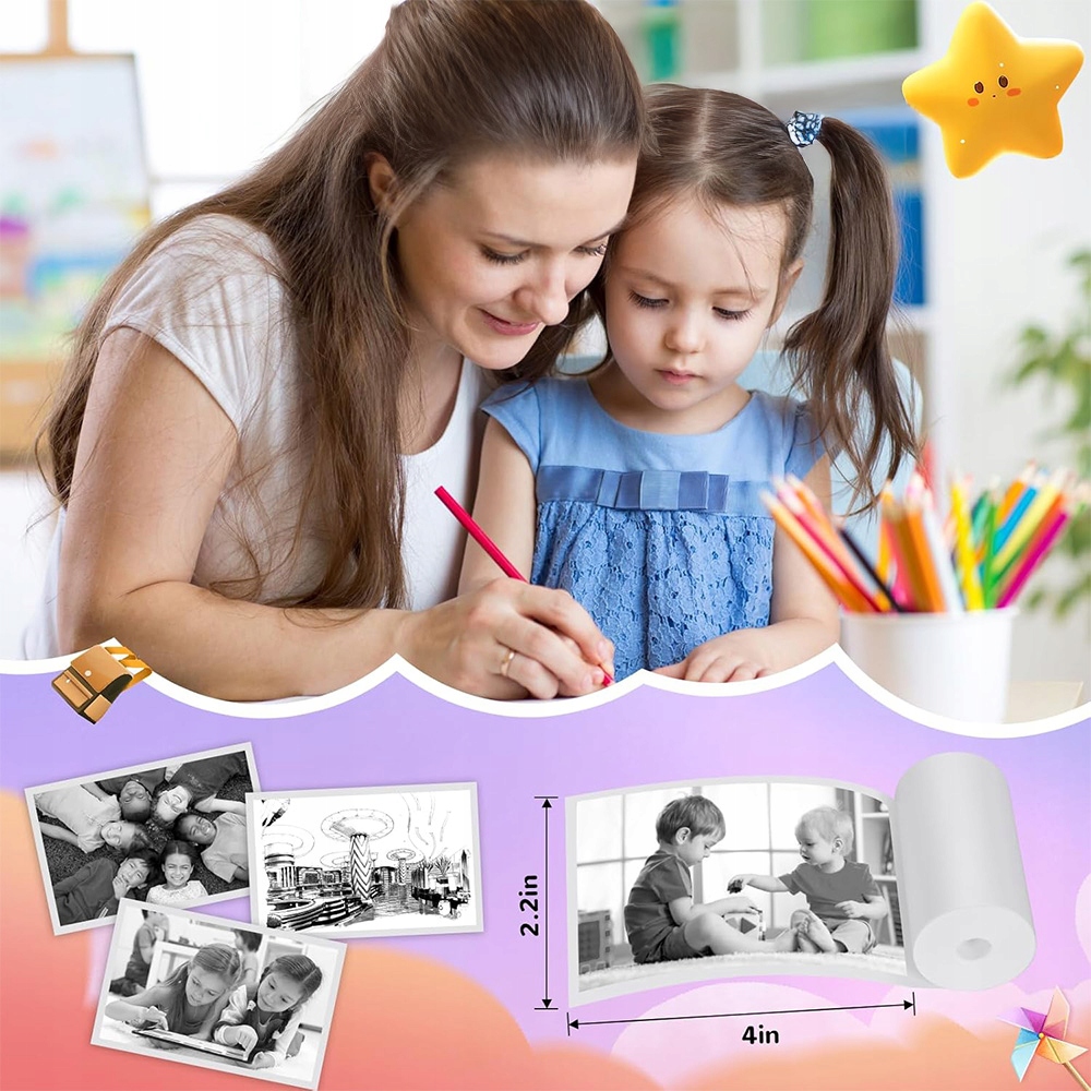 Ця миттєва камера використовує не чорнильні картриджі, а термопапір, який коштує лише 0,02 дол. США за аркуш фотопаперу. Дешевий рулонний папір дозволяє дітям фотографувати, як їм заманеться, і вони можуть миттєво ділитися роздрукованими фотографіями з друзями та вставляти їх у книги, щоб залишити фізичний запис своїх прекрасних спогадів. Ця дитяча камера більша і призначена для дітей. Він такого ж розміру, як мобільний телефон, його зручно тримати дітям і стійкий до падінь.