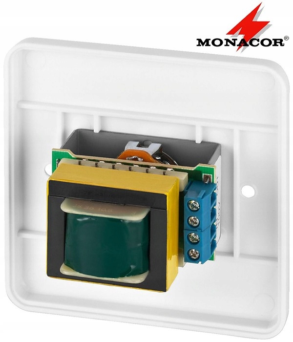 Регулятор ATT-224/WS також використовується в технології 100 В. Завдяки цьому ми можемо побудувати лінію гучномовців з обмеженими втратами потужності, що подається на гучномовці. Monacor ATT-224/WS дозволить вам просто та зручно керувати гучністю будь-де у вашому домі.