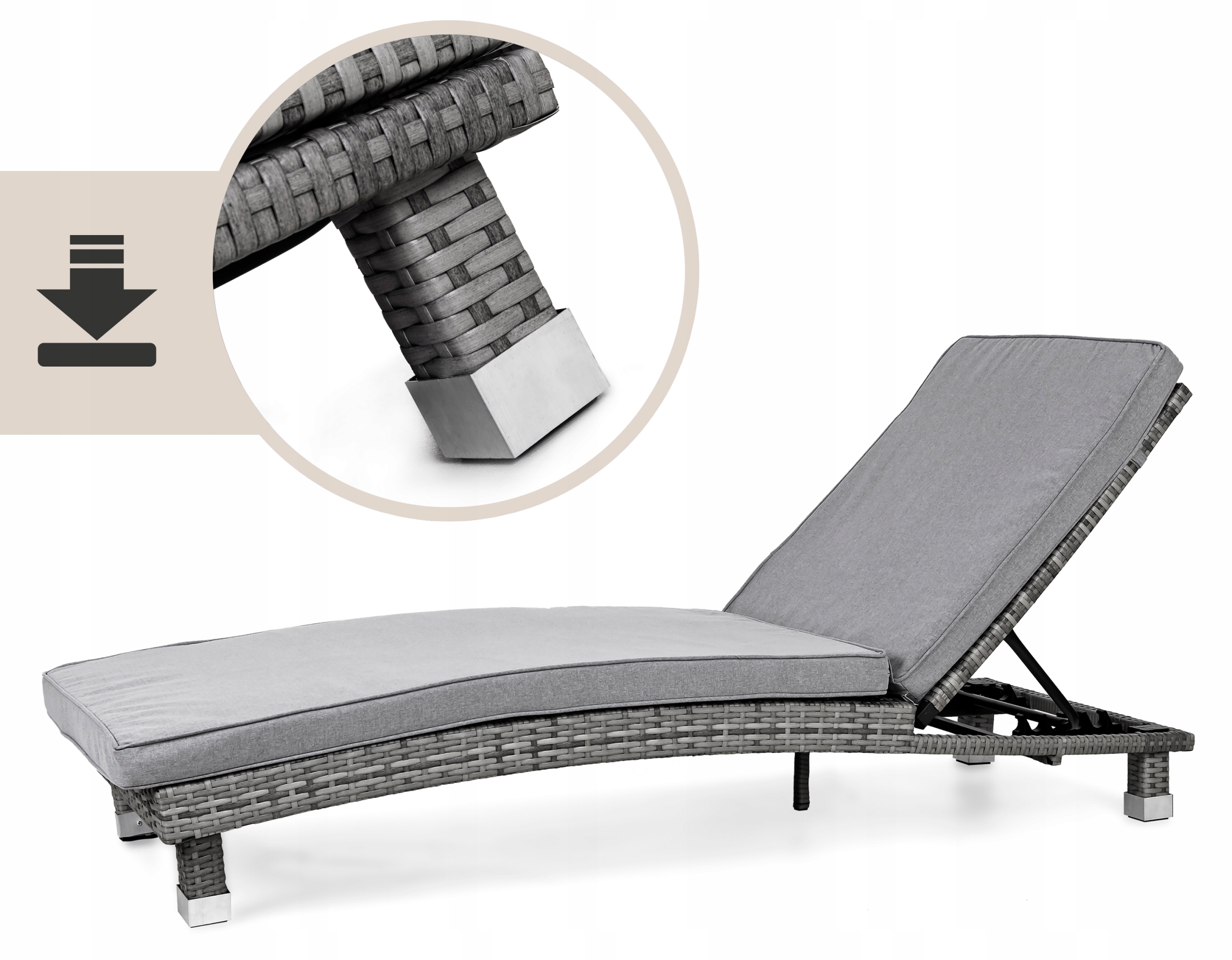 - Monza Deckchair має елегантні поради на ногах, які не тільки захищають їх належним чином, але й збільшують естетику меблів.