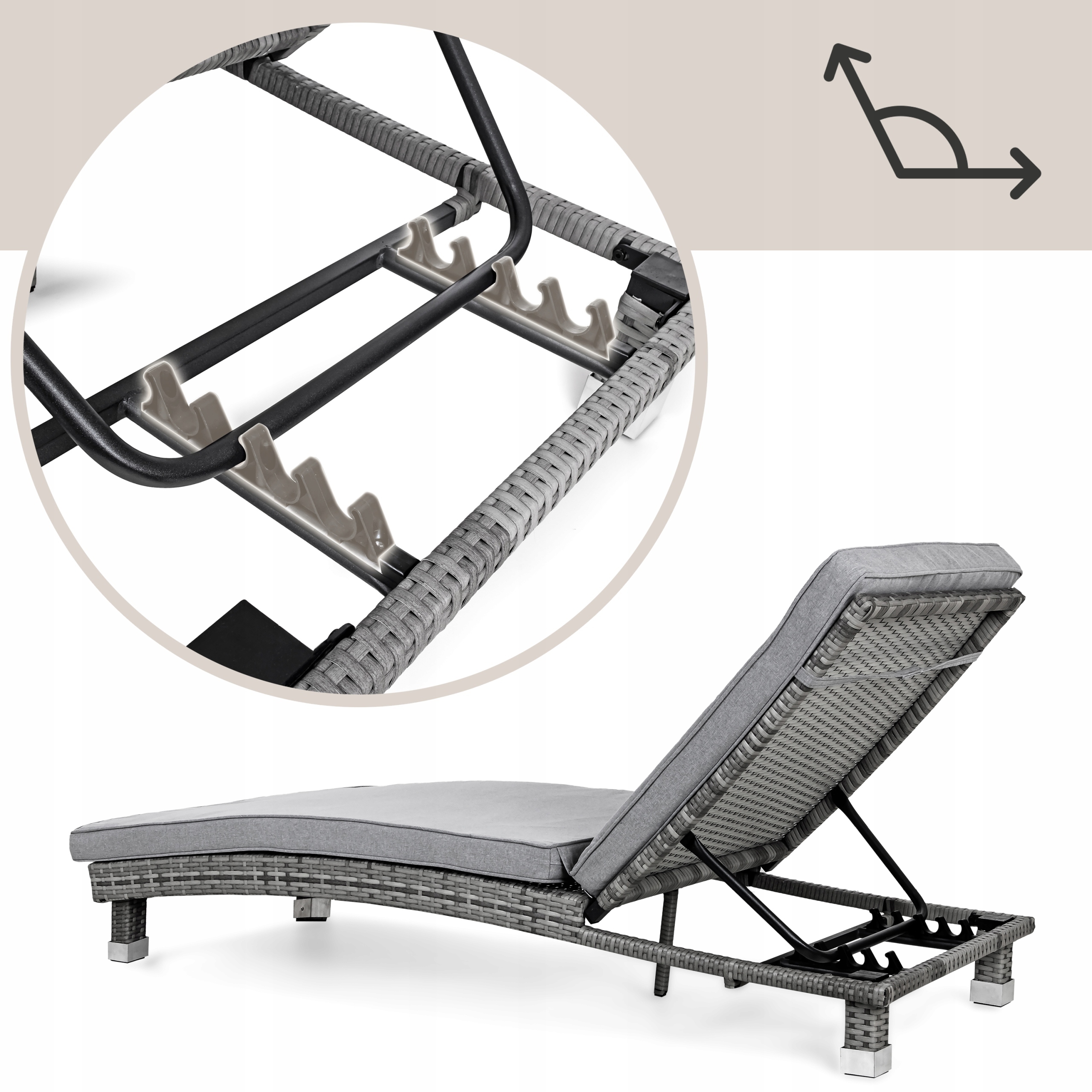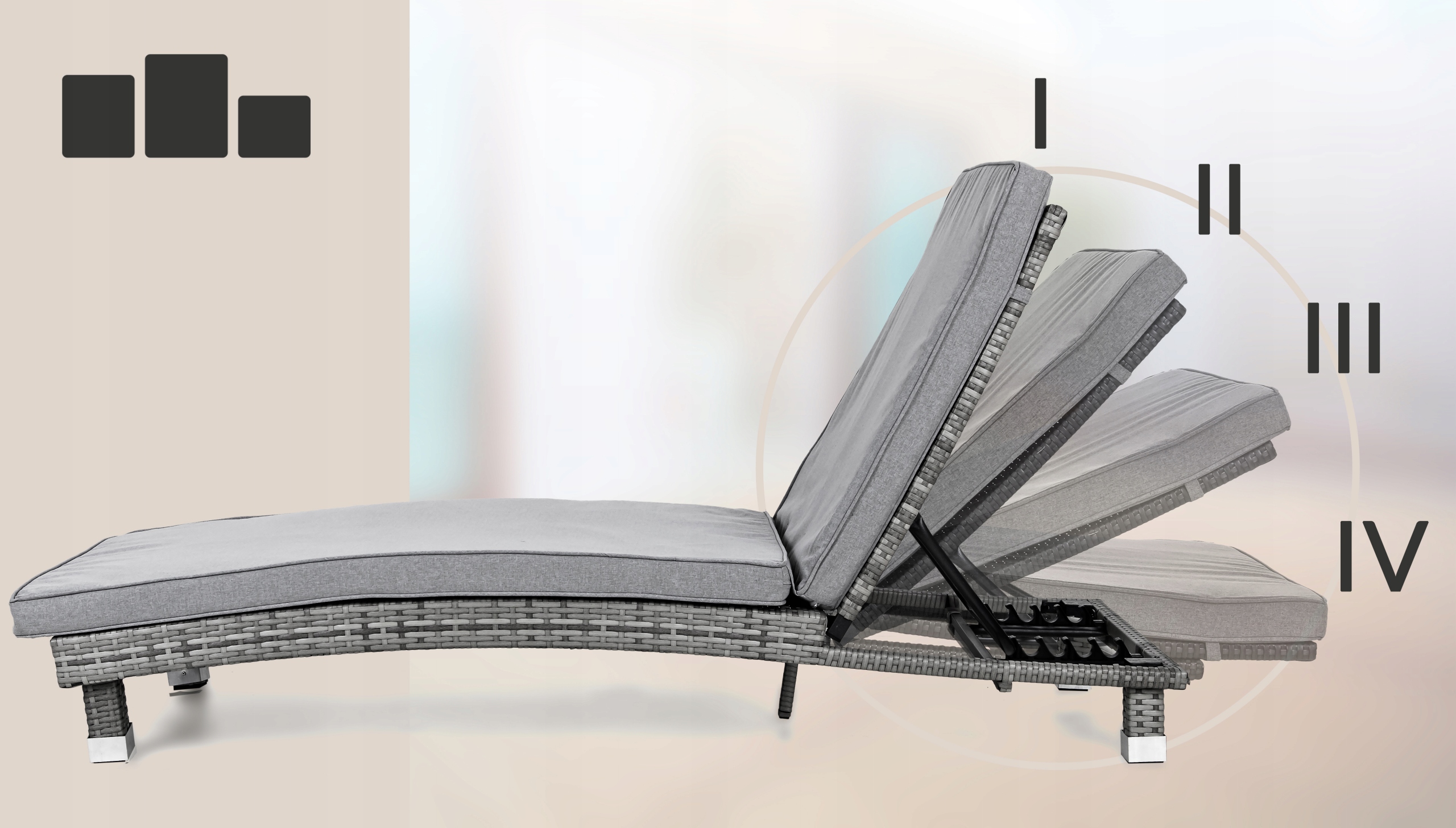 - Декшер має позицію в чотирьох позиціях, , щоб ви могли адаптувати його до виконаної в даний час діяльність. 4 У шезлонгу Монці це можливо!