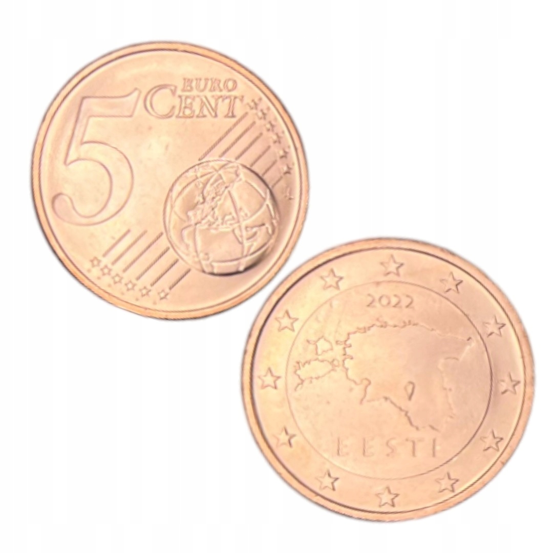Обігову монету зони ЄВРО номіналом 5 ЄВРО-ЦЕНТІВ з країни ЕСТОНІЯ з позначкою року виробництва 2022.