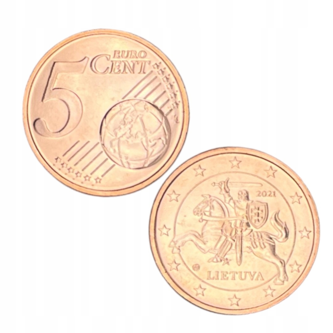 Обігову монету зони ЄВРО номіналом 5 ЄВРО-ЦЕНТІВ з країни ЛИТВА з позначкою року виробництва 2021.
