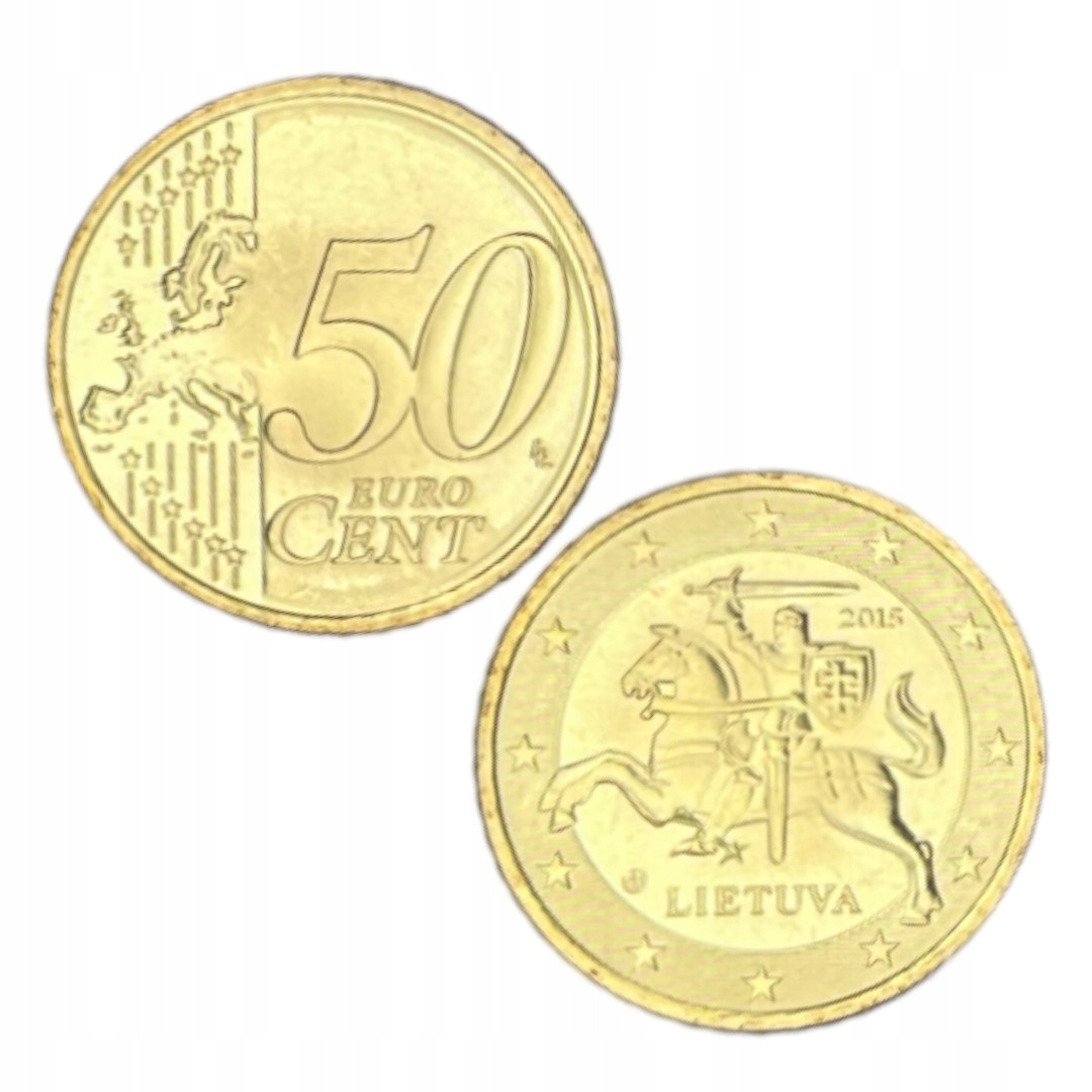 Обігову монету зони ЄВРО номіналом 50 ЄВРО-ЦЕНТІВ з країни ЛИТВА з позначкою року виробництва 2015.