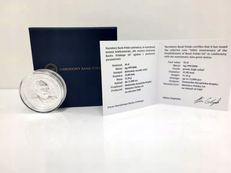 Монета 10 PLN 100 річниця створення банку Polski SA