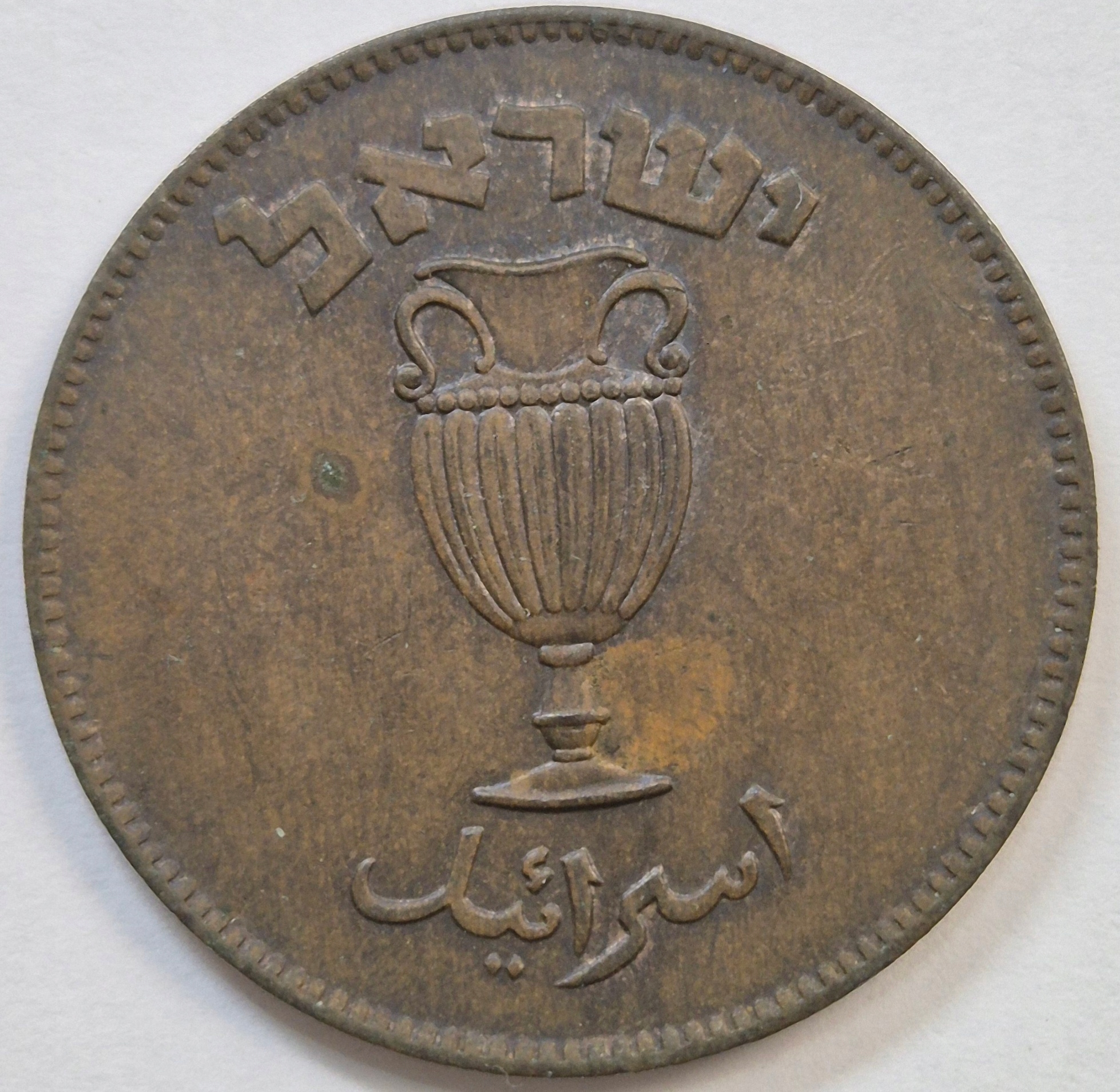 На аверсі монети є стилізована амфора - символ археологічної спадщини Ізраїлю, що посилається на стародавні судини, що використовуються в торгівлі та зберіганням в біблійних часах.