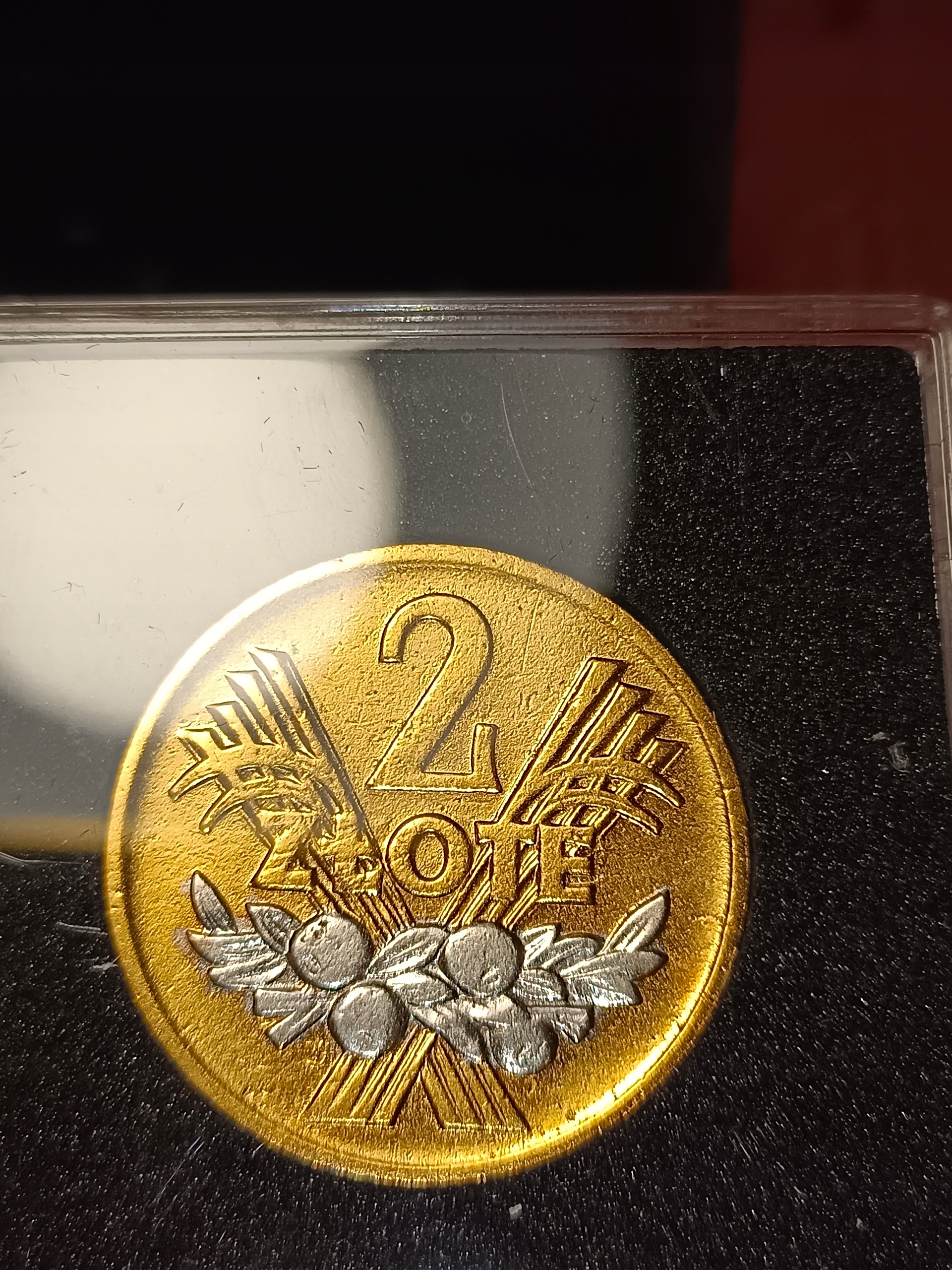 МОНЕТА 2 ЗЛОТІ, ВЕРСІЯ З ПОЗОЛОТОМ І РОДІЄМ, 1974 Р.