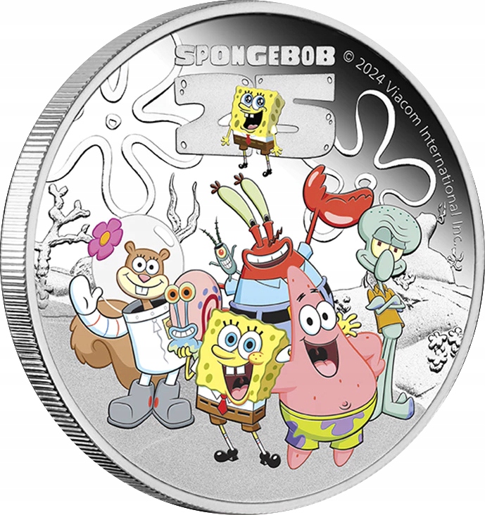 MONETA 25 ROCZNICA SPONGEBOB KANCIASTOPORTY I PRZYJACIELE 1 UNCJA SREBRA