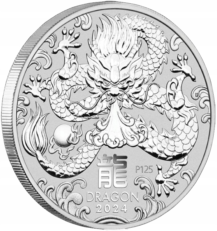 МОНЕТА АВСТРАЛІЙСЬКИЙ МІСЯЦЬ III - РІК ДРАКОНА 2024 - 5 УНЦІЙ СРІБНОГО ПЕРТУ