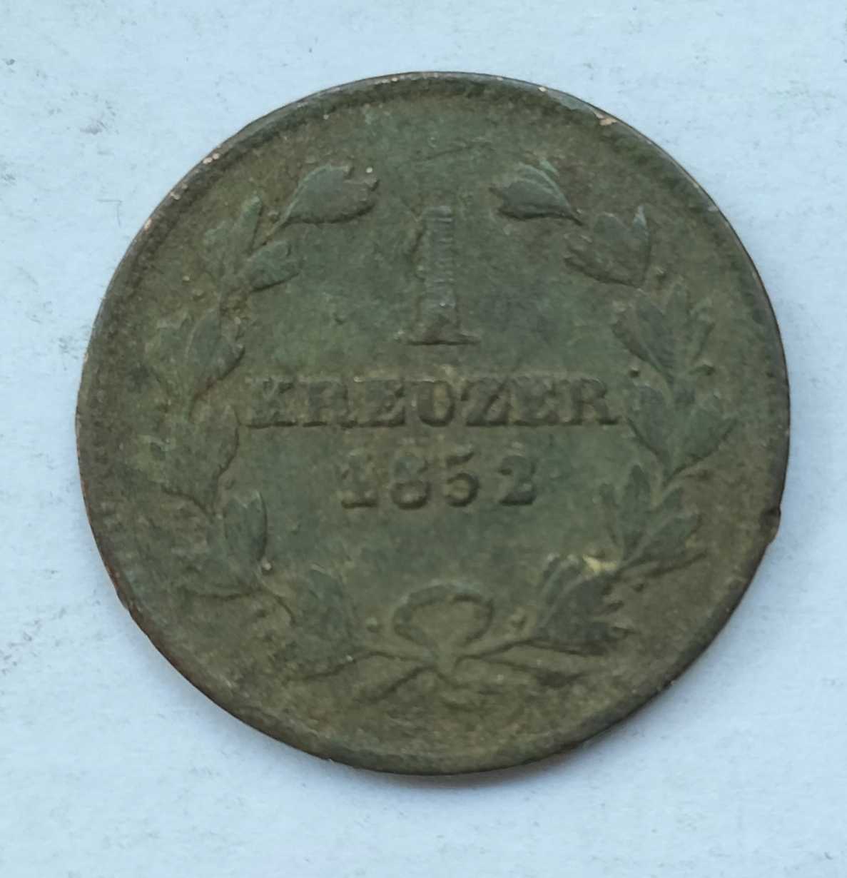 moneta Badenia Wielkie Księstwo Badenii 1 kreuzer 1852