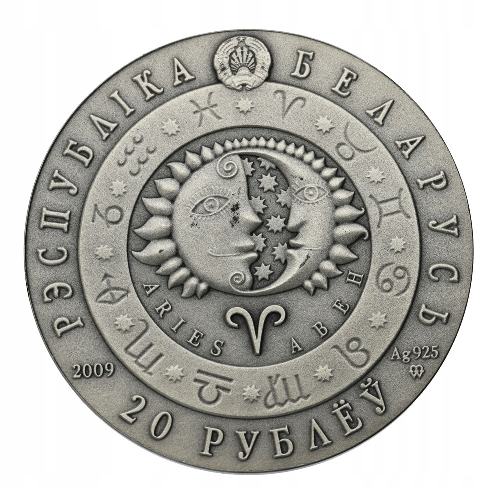 МОНЕТА: БІЛОРУСЬ 20 РУБЛІВ 2009 РІК ЗНАКИ ЗОДІАКУ - БАРАН