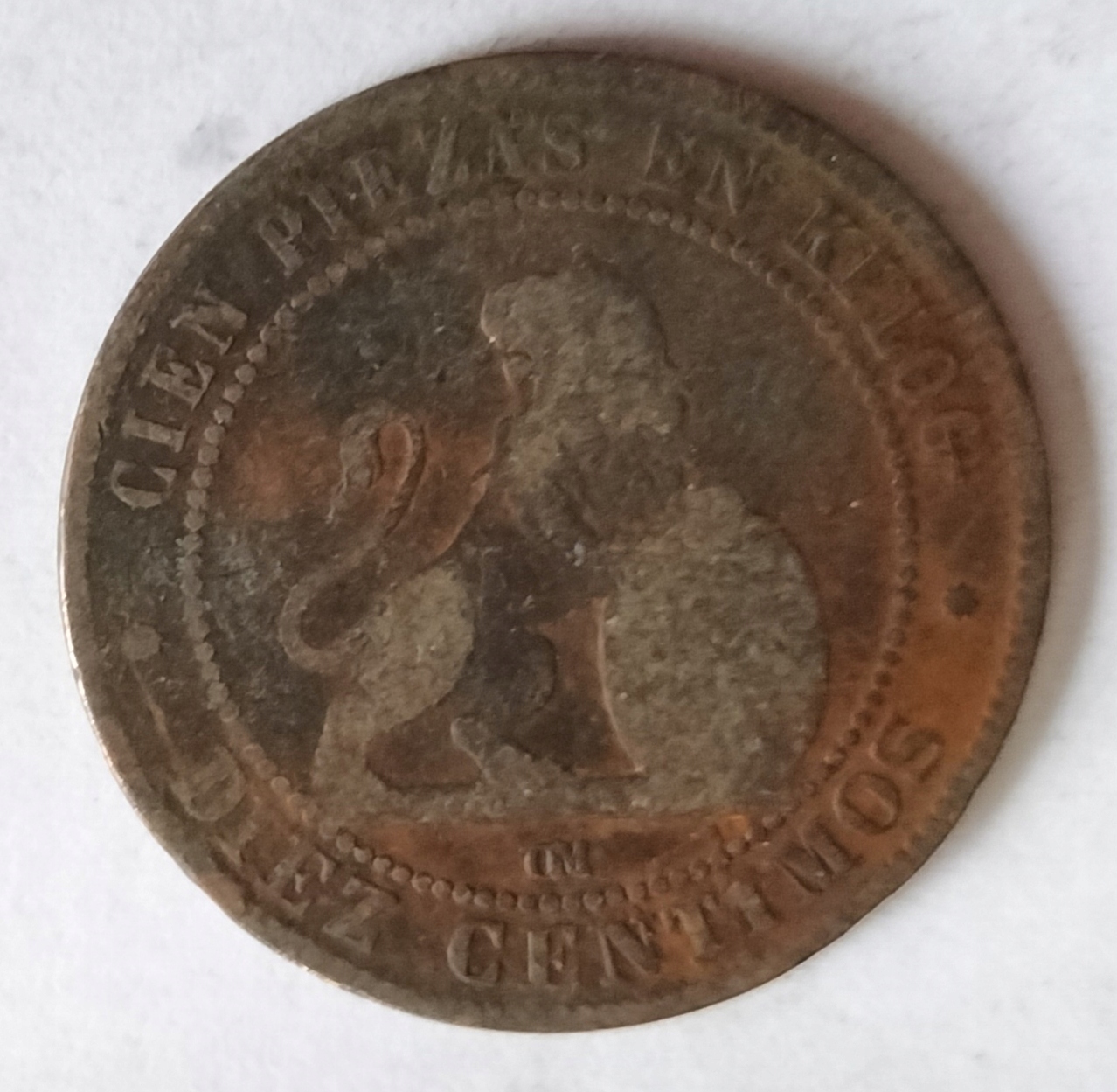 moneta Hiszpania 10 centimos 1870