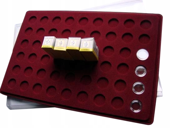 Піддон для 54 монет. Круглі отвори діаметром 22,5 мм. Абсолютно новий піддон із загальними розмірами 330x225 мм із засувкою із загартованої фольги.