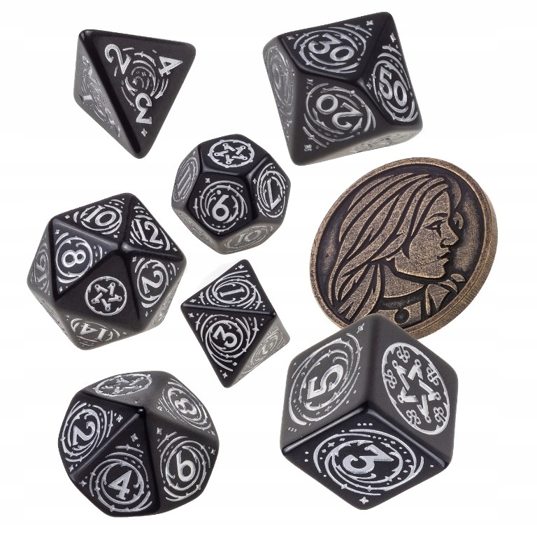 Йеннефер з Венгерберга, чорноволоса довірена особа Обсидіанової зірки - цей спеціальний набір кубиків присвячений їй. Кубики пофарбовані в чорний колір із сріблястими прикрасами, з чітким шрифтом чисел, гравіюваннями, стилізованими під магічні портали, і прикрашені символом обсидіанової зірки
