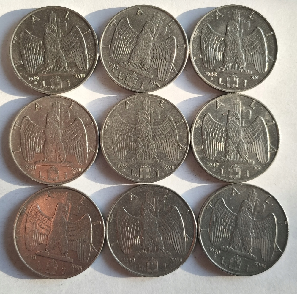 moneta Włochy 1 lir przedwojenna 1940 1942 1939