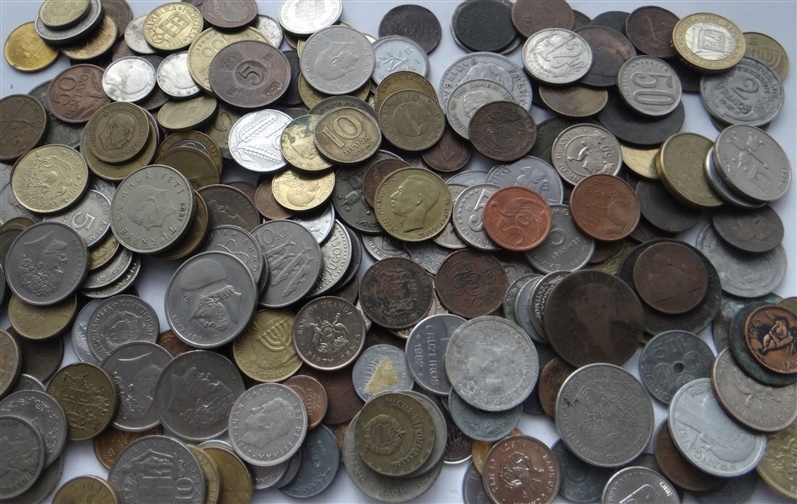 1 кг (1 кілограм) іноземних, екзотичних і довоєнних монет до 1950 року.Кожен кілограм містить кілька десятків/кілька сотень монет.