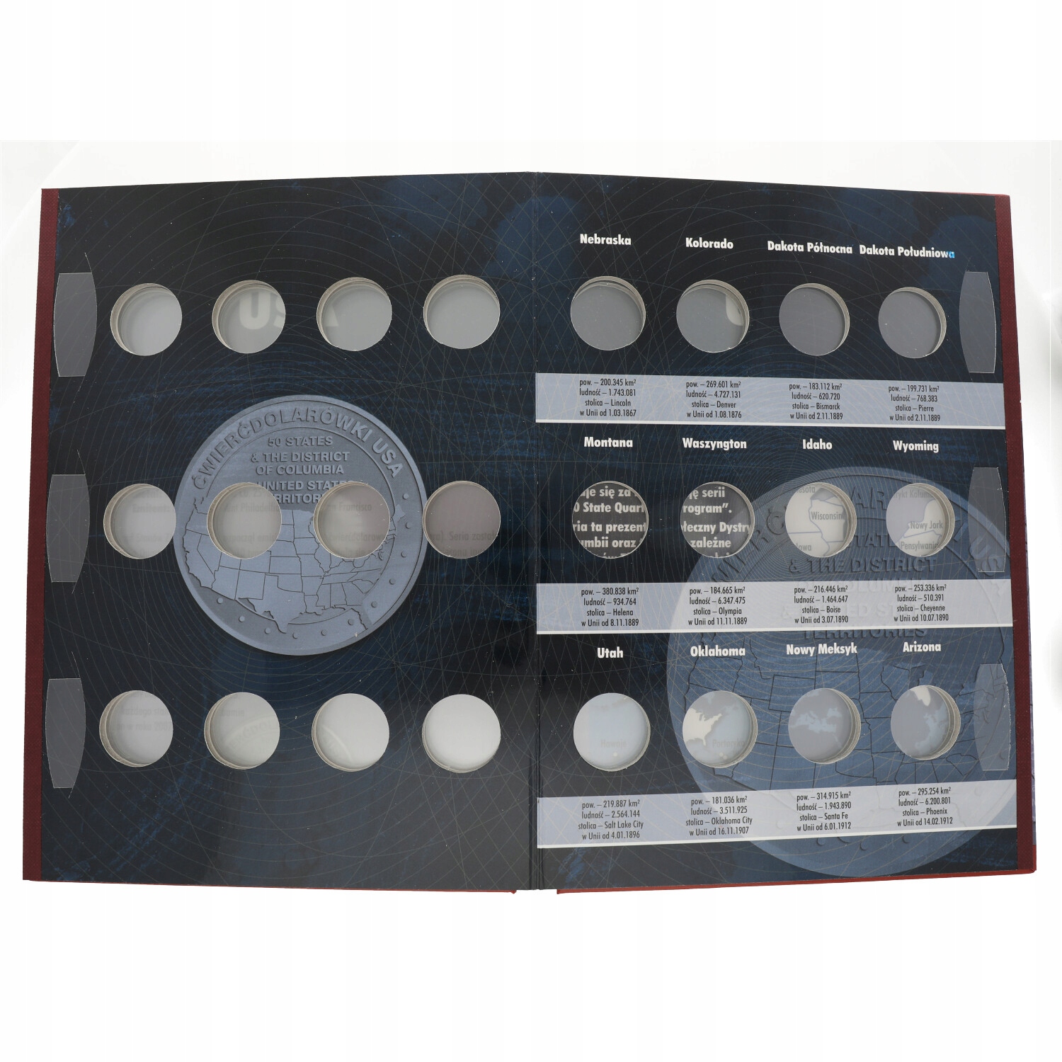 Всередині місце для 56 монет із короткими історичними нотатками.