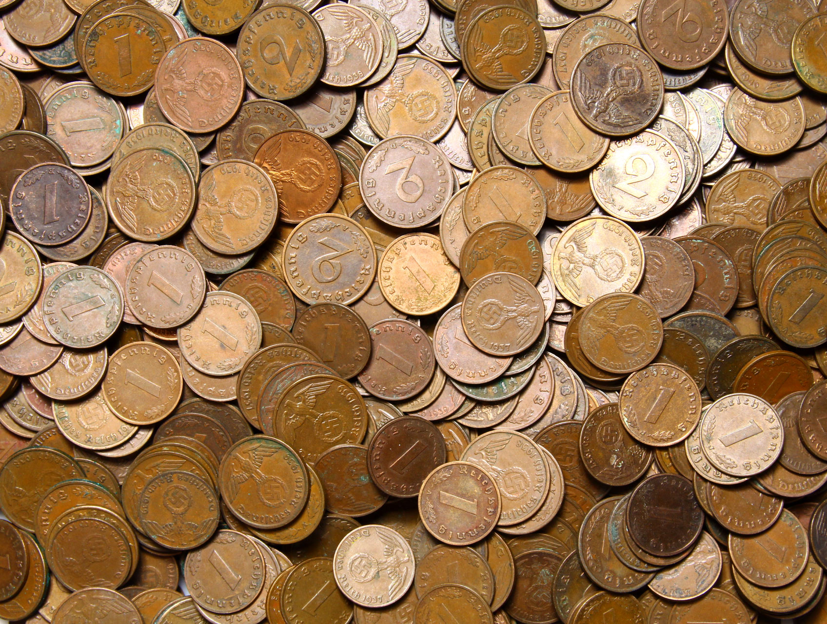 Монети Третього Рейху 1 і 2 пфенніг-бронза-10 шт.