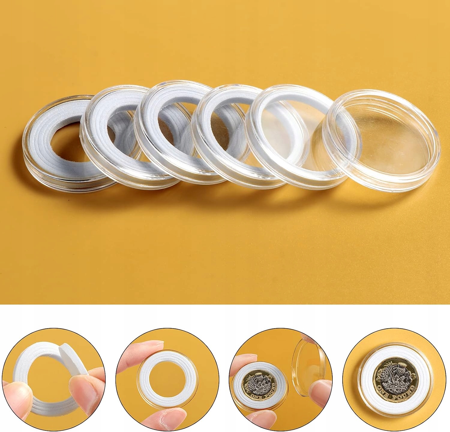 🪙【 Капсули для монет преміум -класу】 контейнер для капсул для монет виготовлений з високопрозорого та ущільнювального пластику. Круглі кути роблять краї гладкими та зручними. Дизайн отвору, укладеного півмісяця, допомагає відкрити капсулу з монетами швидше і зручніше.