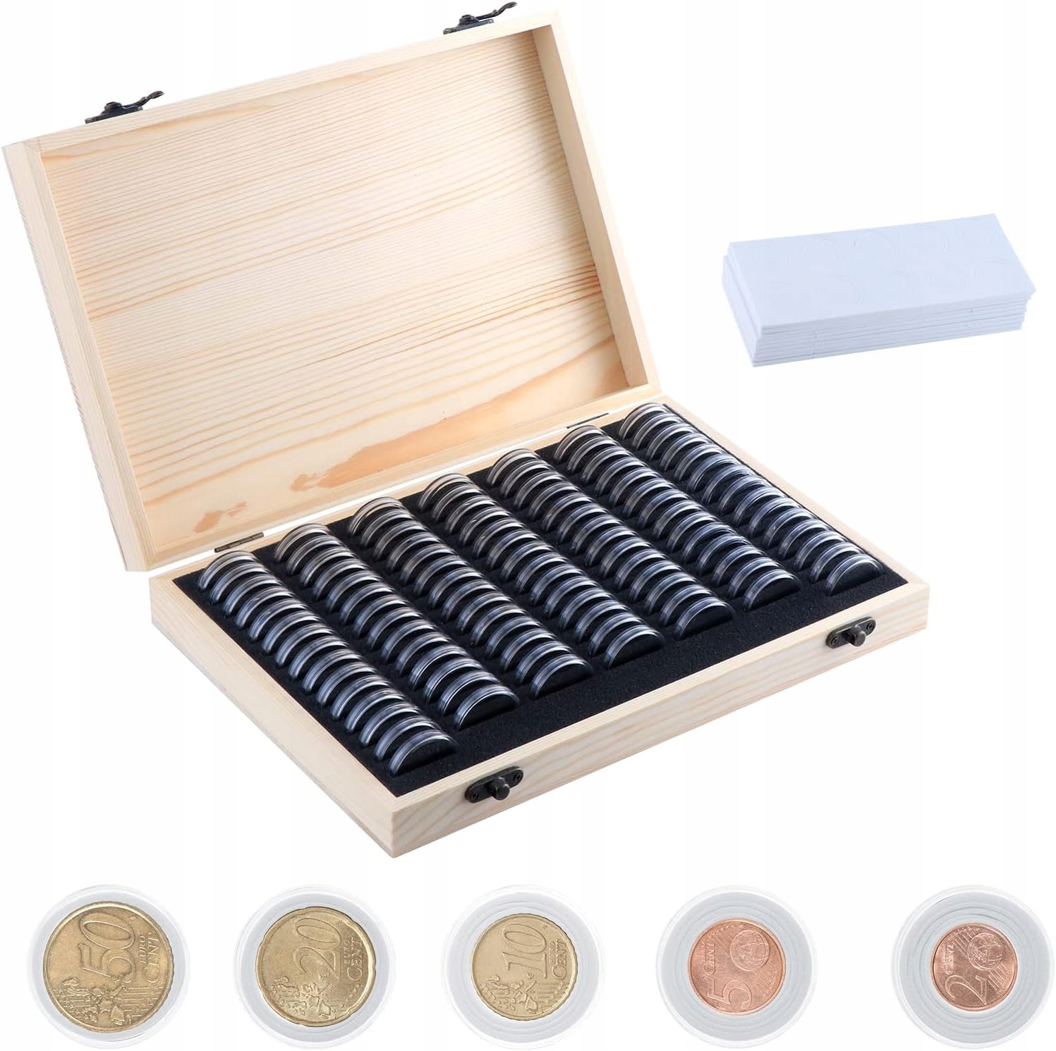 🪙【 дерев'яна коробка для зберігання монет】 Розмір. Прозорі капсули монет полегшують зберігати, переглядати та замінити монети.