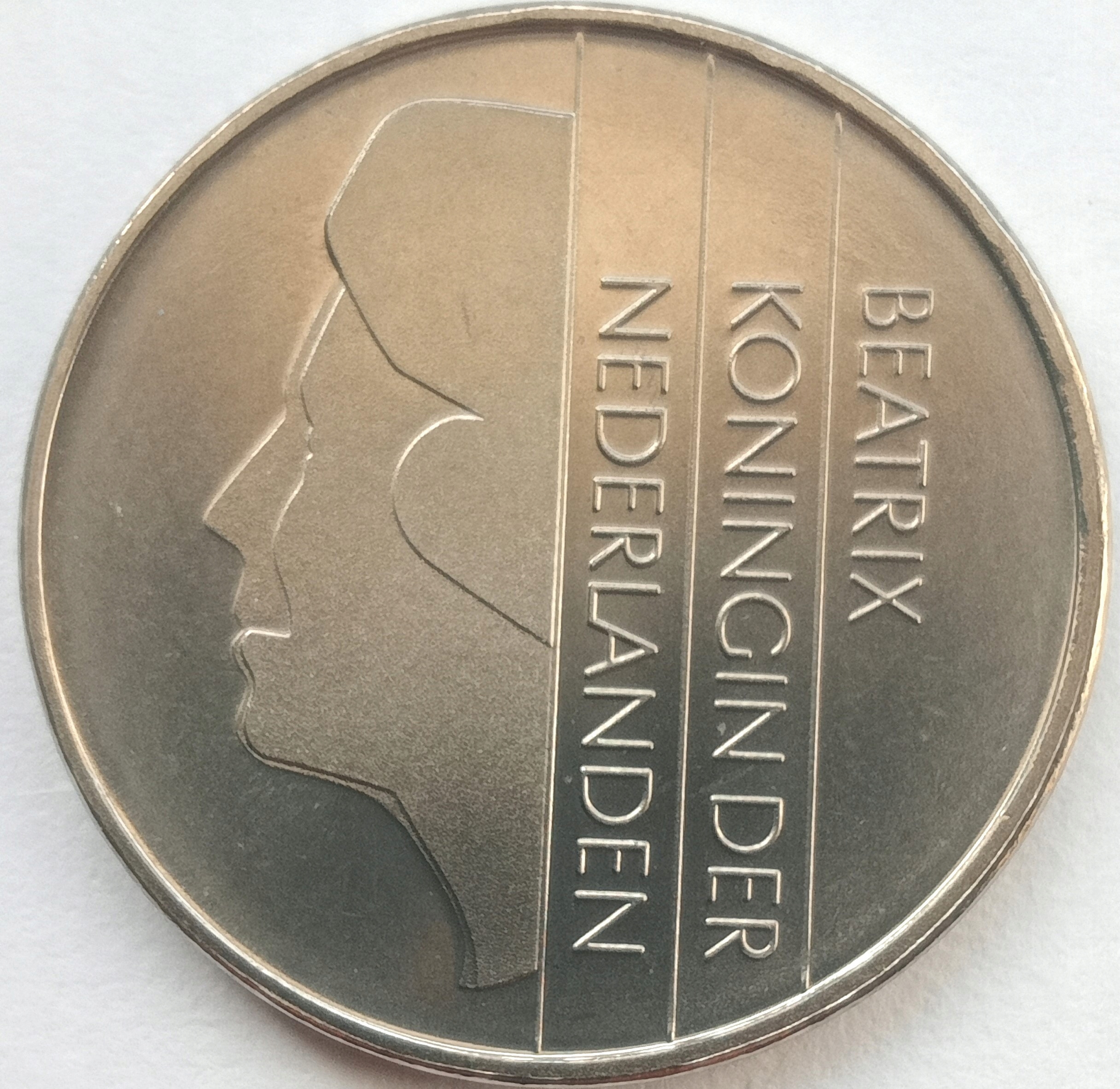 Реверс: Голова (1/2) королеви Беатрікс ліворуч від вертикального тексту між 2 рядками BEATRIX / KONINGIN DER / NEDERLANDEN