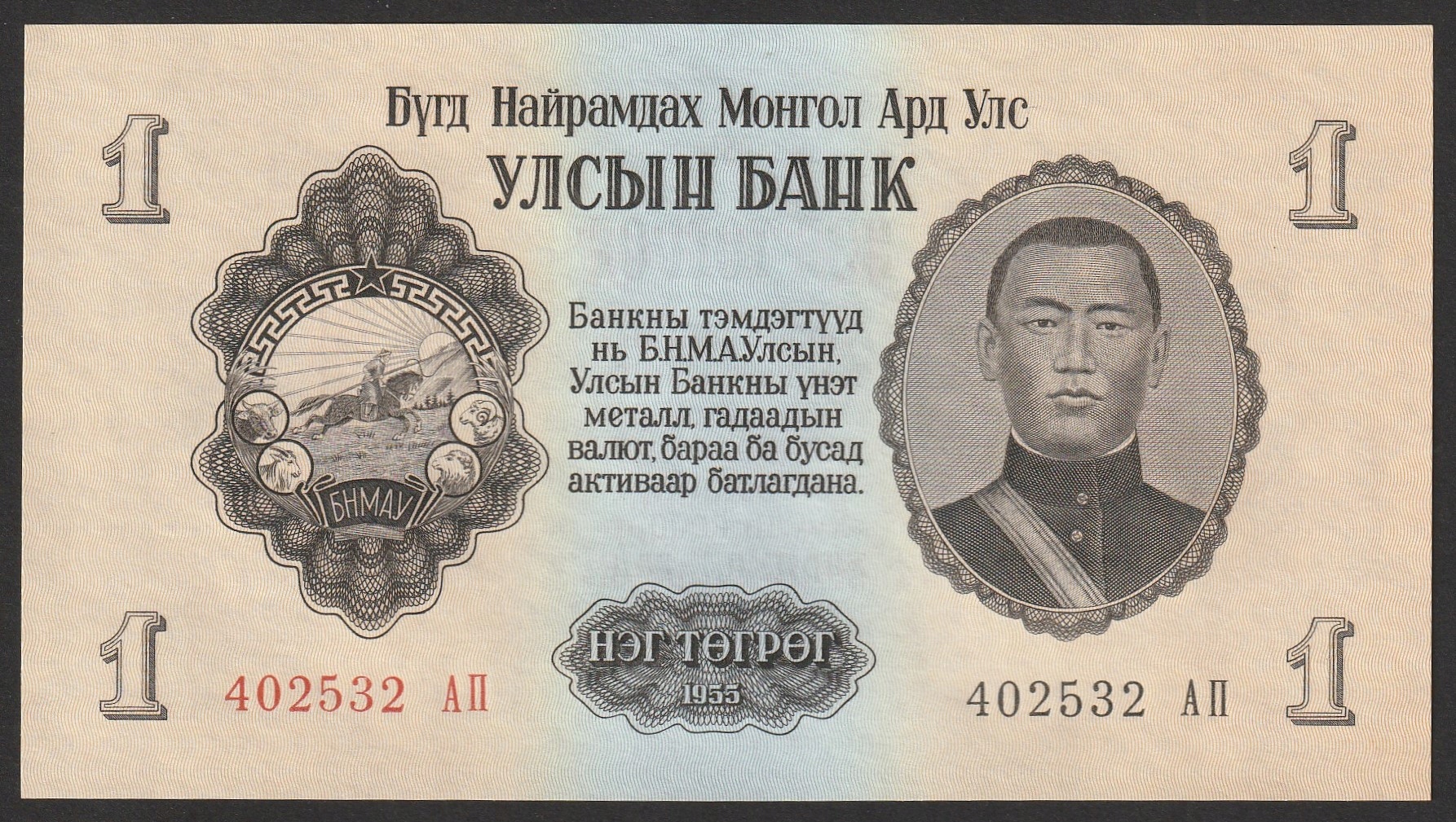Монголія 1 тугрик 1955 - AP - UNC банківська держава