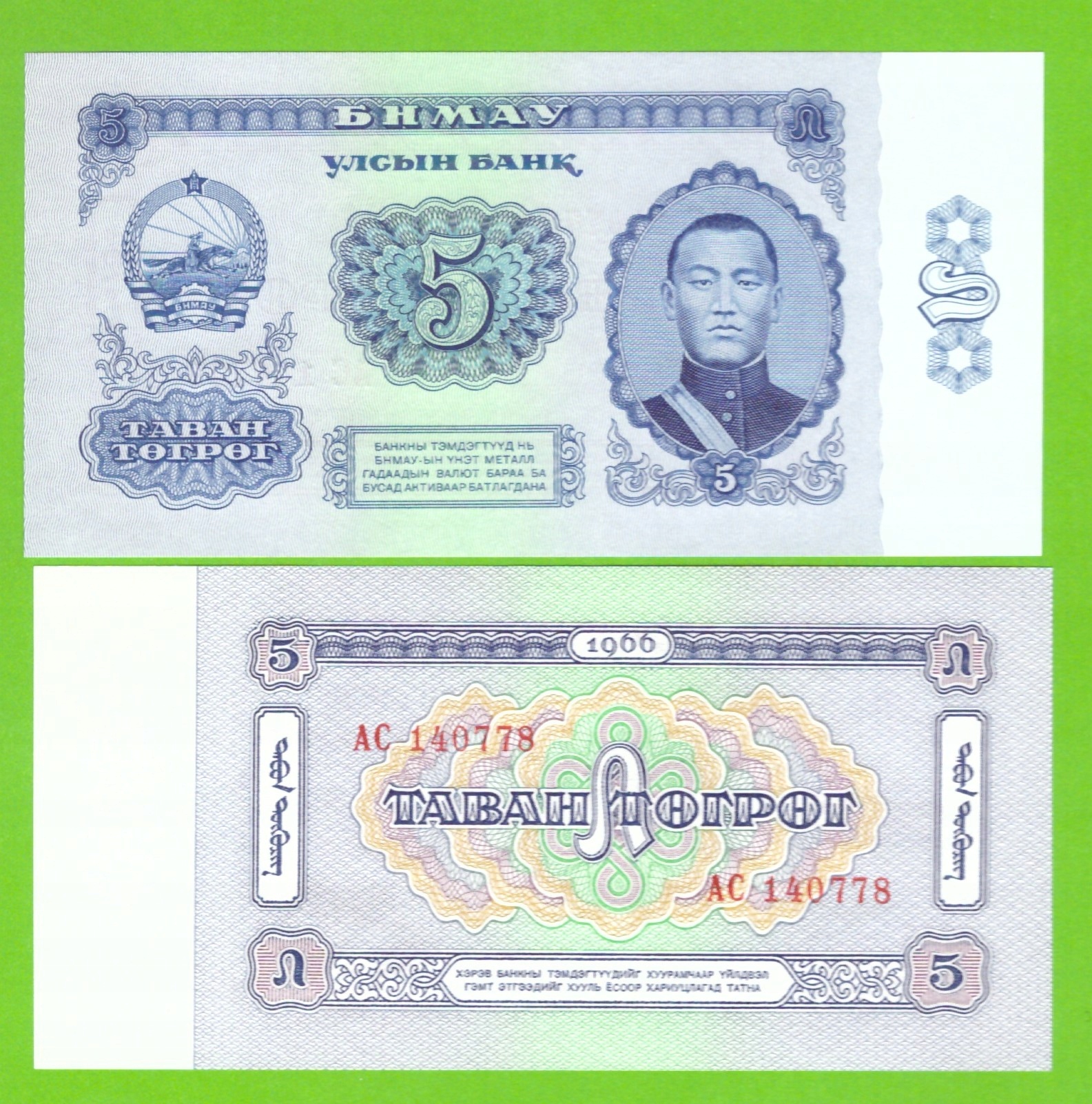 МОНГОЛІЯ 5 ТОГРОГ 1966 Р-37 UNC