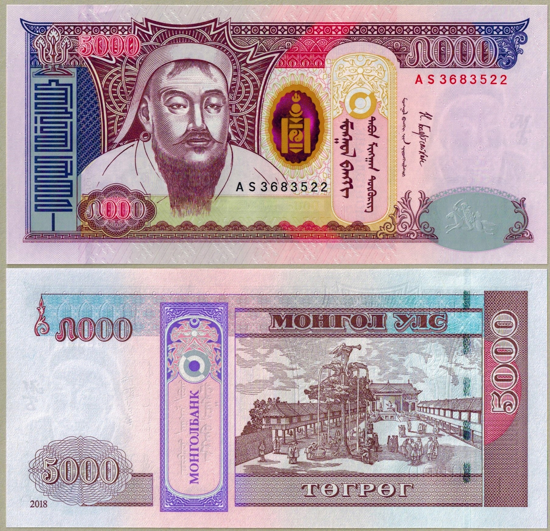 Монголія 5000 тугриків 2018 P-68d UNC