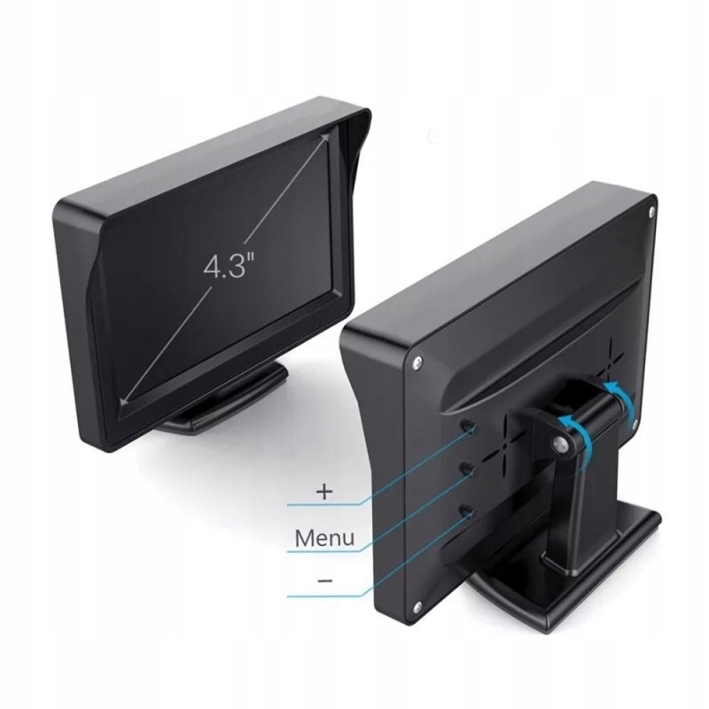 Монітор - РК-дисплей, сумісний із камерами заднього виду. Він має два незалежні входи, можна відображати зображення, наприклад, з однієї камери або інше джерело (DVD), а після ввімкнення задньої передачі автоматично перемикається на друге джерело зображення – наприклад, камеру заднього виду.