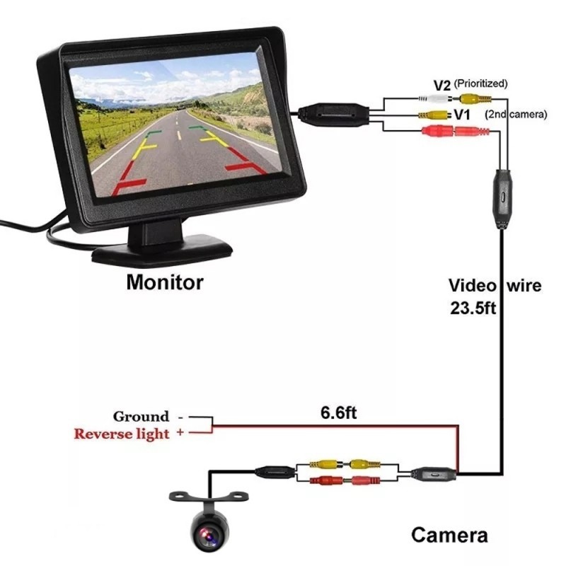 Монітор - РК-дисплей, сумісний із камерами заднього виду. Він має два незалежні входи, можна відображати зображення, наприклад, з однієї камери або інше джерело (DVD), а після ввімкнення задньої передачі автоматично перемикається на друге джерело зображення – наприклад, камеру заднього виду.
