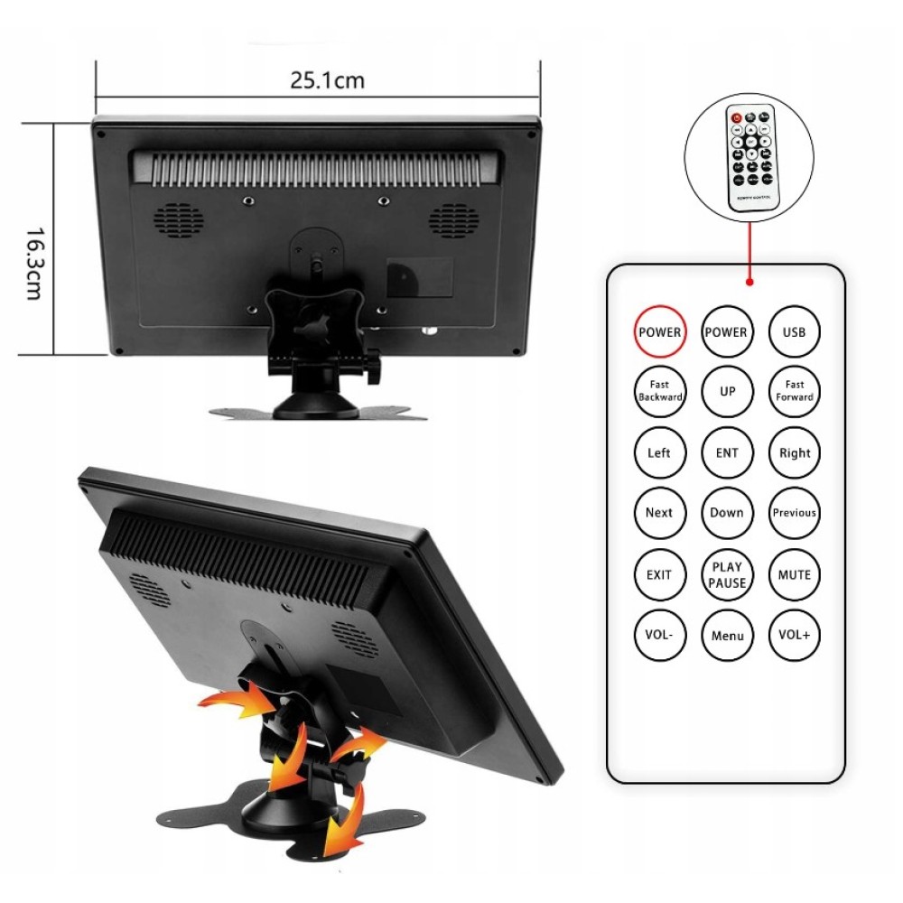 МОНІТОР 10.1" HD HDMI VGA AV BNC IPS 170° ПІДСТАВКА + ПУЛЬТ ДИСТАНЦІЙНОГО КЕРУВАННЯ