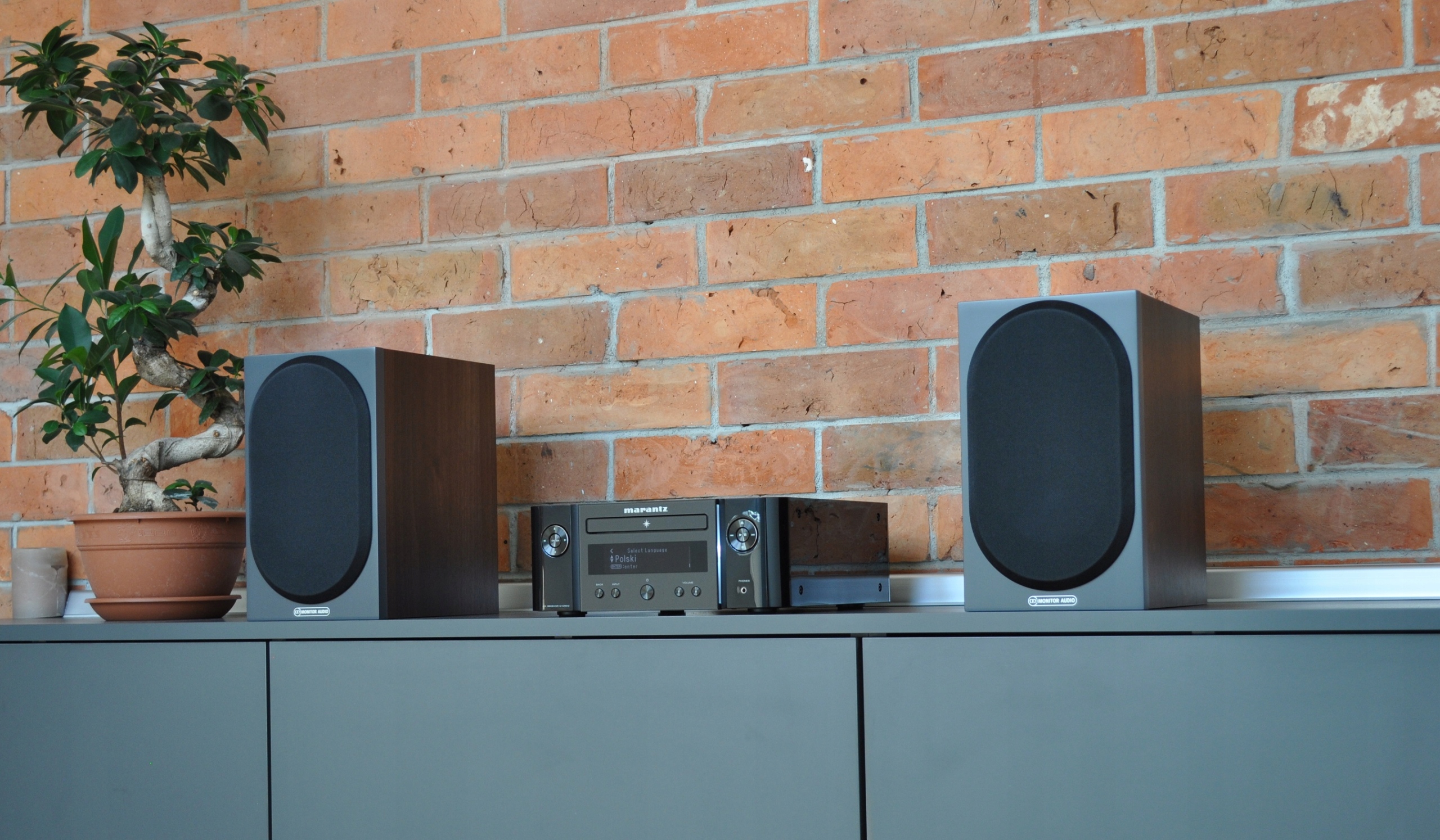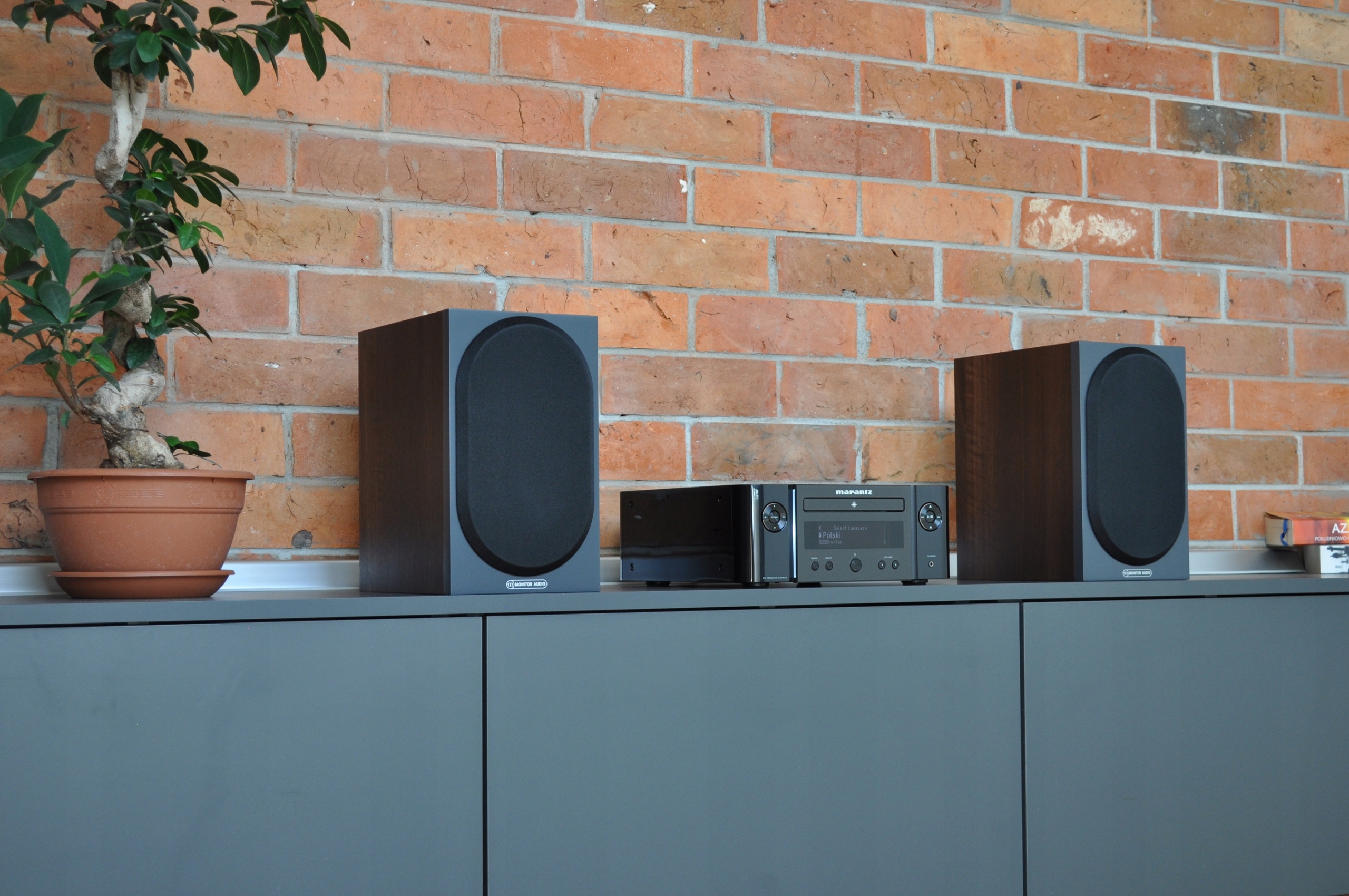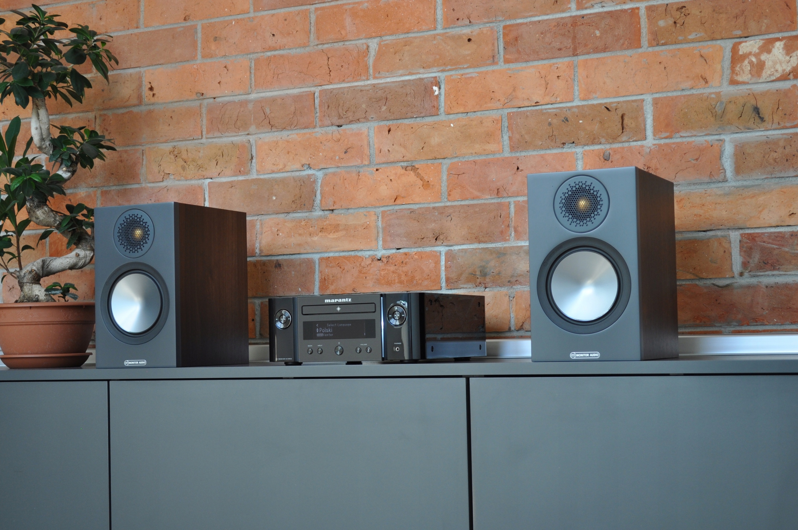 Monitor Audio Bronze 50 Walnut – темний горіх із графітовою передньою панеллю + швидкий бас Marantz Melody.
