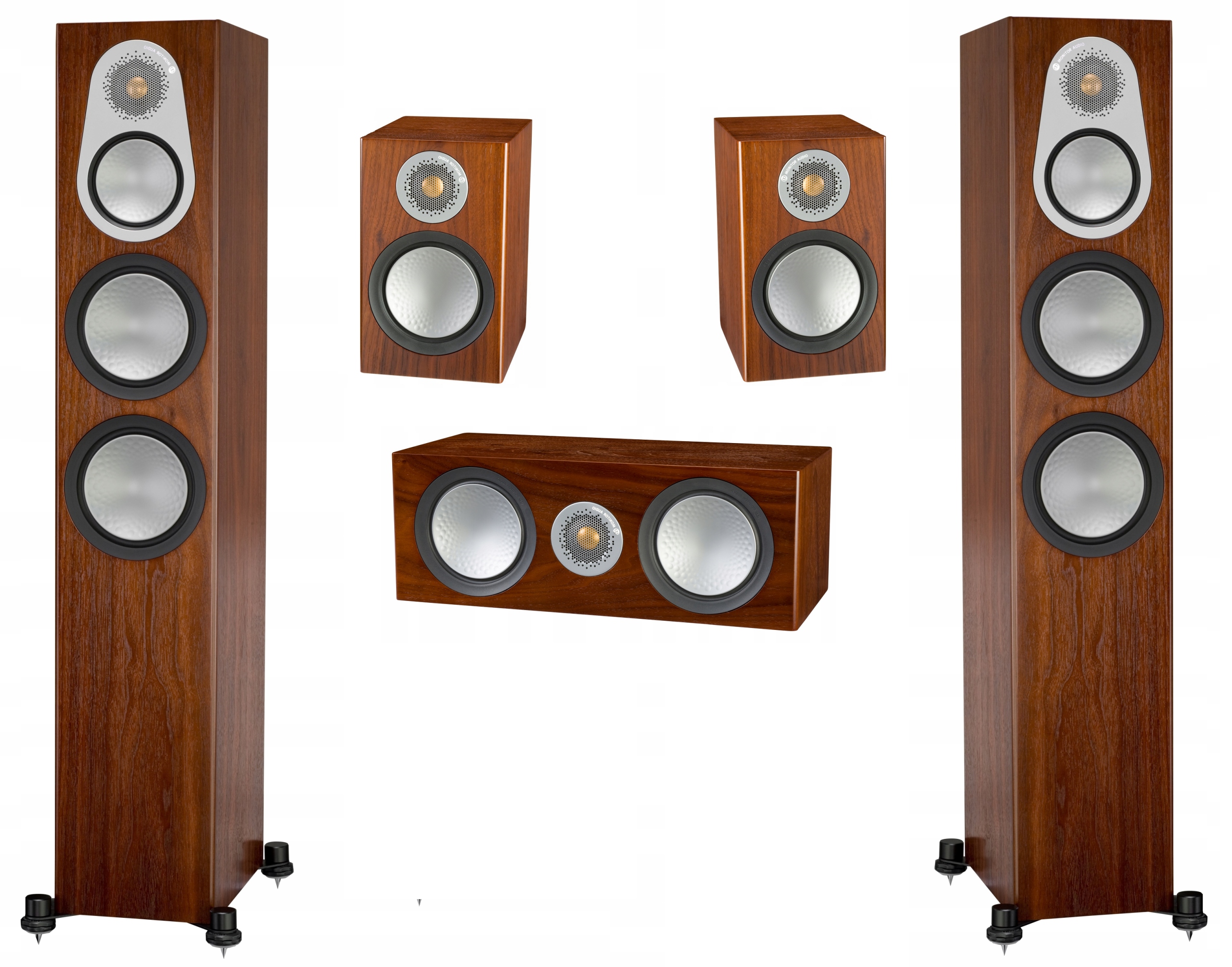 Monitor Audio Silver 6G, колір горіх/горіх - комплект для домашнього кінотеатру 5.0, новий, заводська упаковка. Це наш останній, новий набір за вигідною літньою ціною. Чудова можливість для кінотеатру преміум-класу за ціною середніх наборів.