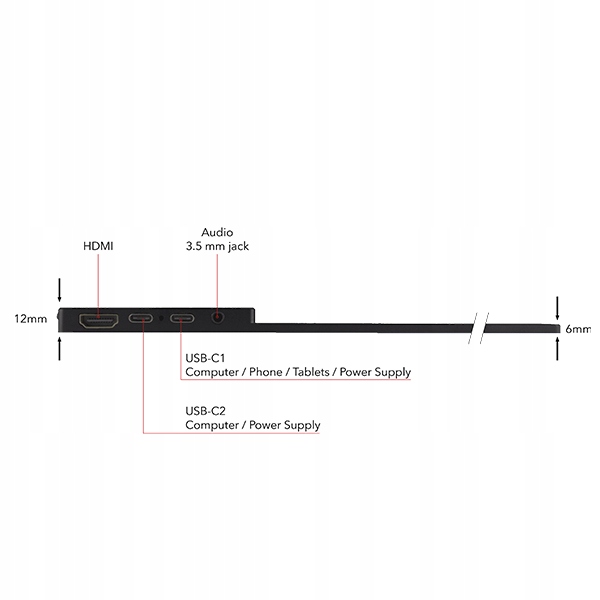 - кабелі (HDMI, 2xUSB-C до C), джерело живлення, неопреновий захисний рукав