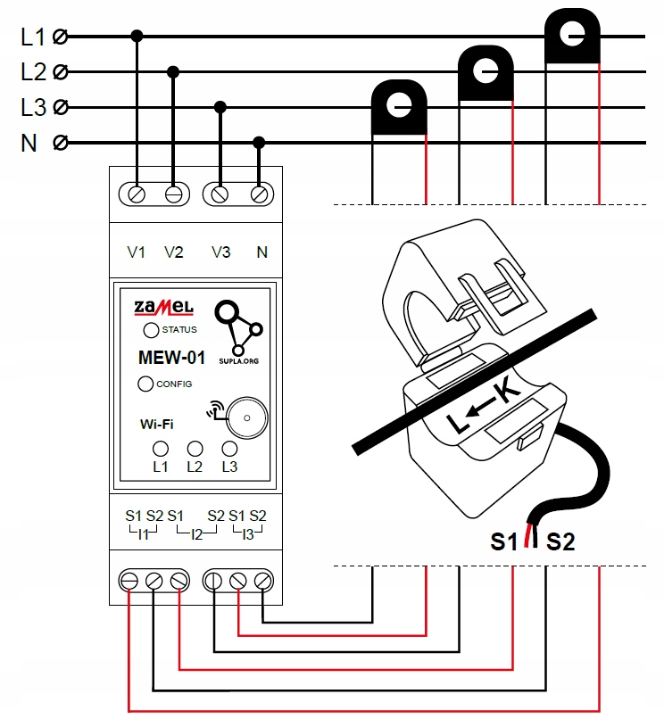 Монітор 3-фазного Wi-Fi лічильника енергії із зовнішнім відпалом mew-01/ant Supla Zamel