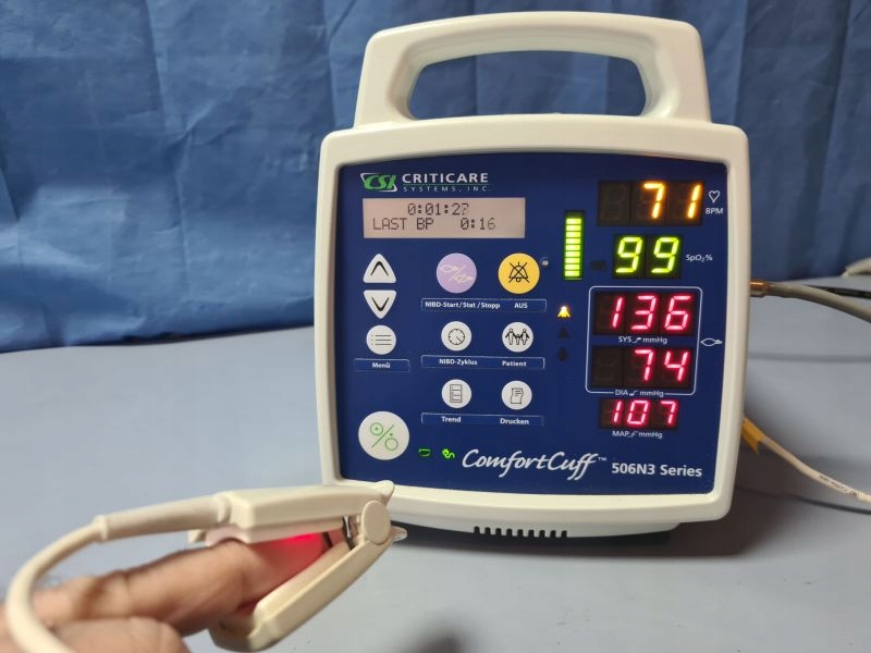 НЕІНВАЗІВНЕ ВИМІРЮВАННЯ ТИСКУ (МАНЖЕТА НА РУЦІ) ТА НАСИЧЕННЯ (ДАТЧИК З ЗАЩИПКОЮ) FINGER)