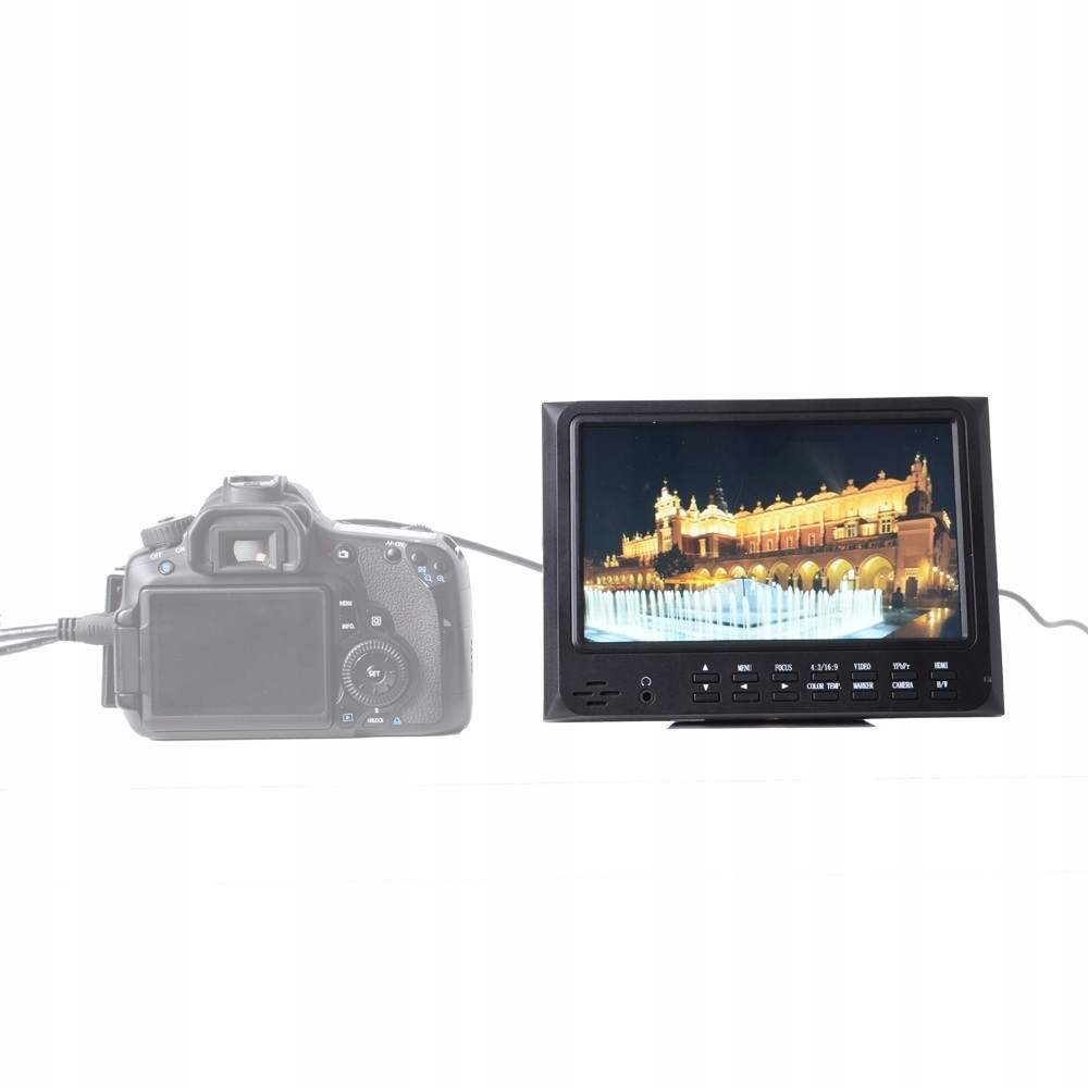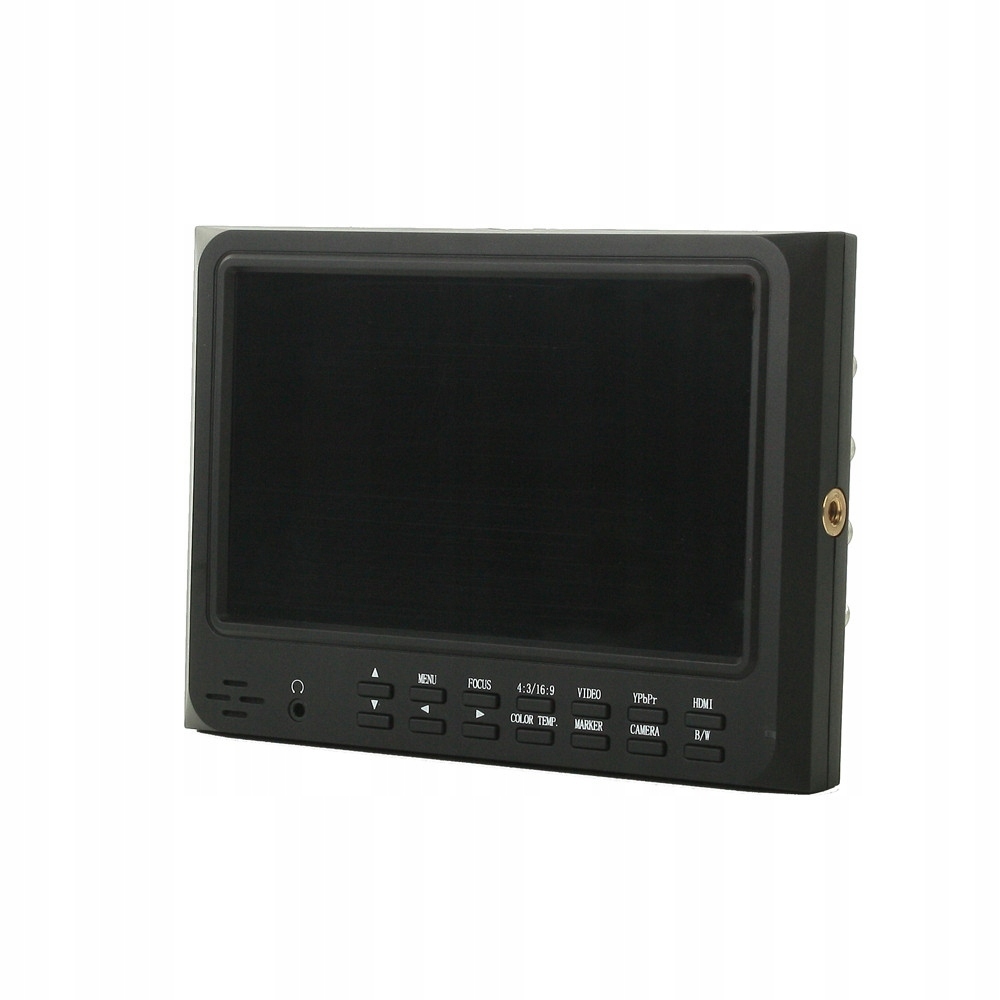 Монітор попереднього перегляду Genesis VM-5 LCD 7" 4 Завдяки більш тривалому діагоналі дисплея контроль функцій камери та обрамлення набагато простіше. Монітор також дозволяє відійти від камери до довжини кабелю, які підключені обидва пристрої. Обширна група записів та виходів -це величезна гнучкість та можливості співпраці в реальному часі для професійних програм. Основою пристрою є 7 -дюймовий РК -екран та основна роздільна здатність 1024x600 пікселів. Для його підсвічування використовувались світлодіоди, завдяки якому чіткість зображення становить 250cd/m2, а контраст 700: 1, зберігаючи загальне споживання електроенергії в 6 Вт. Genesis on Camera Field HD Monitor за допомогою кріпленого кабелю може бути підключений до камер та камер, оснащених з'єднувачем Mini-HDMI. Для розширення діапазону можливостей монітора він також оснащений одним аналоговим вхідним розетками BNC для звукового сигналу, а також вхідними та вхідними розетками для сигналу зору. На дисплеї також є три компонентні відео роз'єми та один XLR DC. На передній частині дисплея є зручні кнопки для регулювання зображення на режимах монітора та відображення. Однією з найважливіших функцій дисплея є здатність змінювати частку відображення (4: 3 або 16: 9), а також контроль яскравості, контрасту, насичення та кольорової температури. Наступні кнопки пристрою використовуються для переходу на чорно -біле зображення (BW) та масштабування зображення (маркер). Крім того, ви можете підключитися до навушників монітора, для яких вхід знаходиться в передній частині пристрою. Пристрій може працювати з зарядним пристроєм та акумулятором Sony NP-F970. Основні особливості:- Він працює з Canon 5D MKII