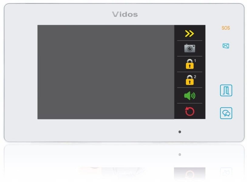 Багатофункціональний монітор, призначений для роботи в системі VIDOS DUO. Призначений для односімейних і багатоабонентських систем. 7-дюймовий сенсорний дисплей дозволяє зручно орієнтуватися в екранному меню. Вбудована пам’ять для фотографій і підтримка карток micro SD дозволяють записувати відвідування та можливість відвідувачам залишати повідомлення під час нашої відсутності.