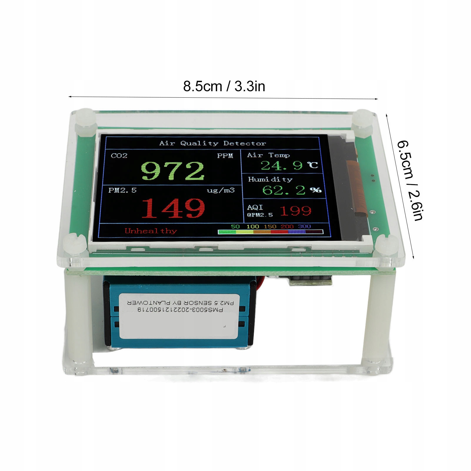 4. Хороша продуктивність: цей датчик якості повітря можна використовувати для виявлення частинок PM2,5, температури та вологості, що ідеально допомагає нам зрозуміти якість повітря в нашому домі, машині, офісі тощо.