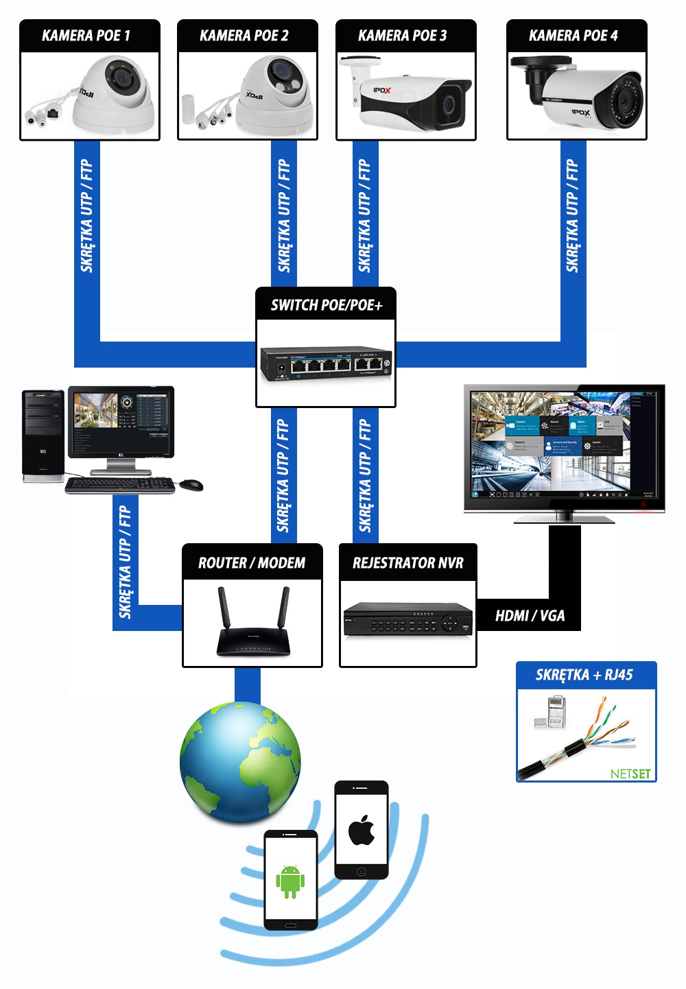 - PoE (Power-Over-Ethernet) технологія - сигнал і живлення камери через той самий кабель,< /li>
