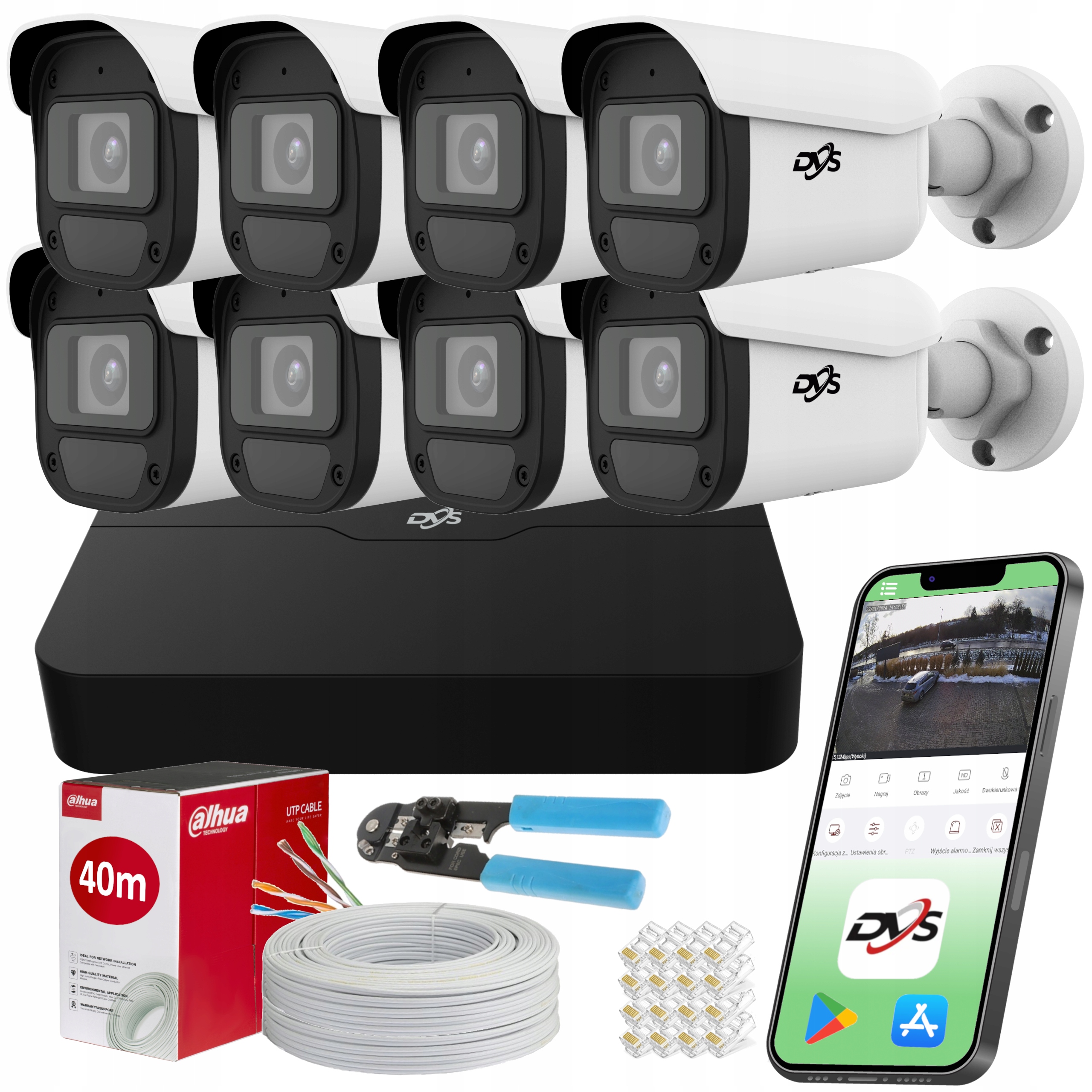 ПрограмаDVS-VIew, створена для польських користувачів, дозволяє постійно спостерігати за обраним місцем і переглядати записи на карті Micro SD. Користувачі також можуть зробити фотографії та записувати відео безпосередньо через програму, які потім зберігаються на мобільному пристрої. Функція цифрового масштабування дозволяє точно збільшувати вибрані фрагменти зображення до 8 разів.