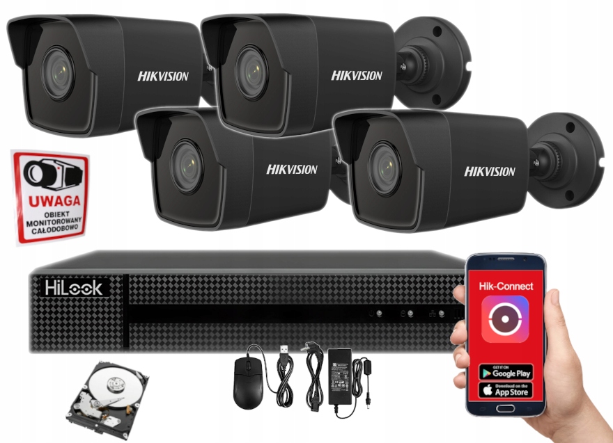 ✨ Набір простий встановлювати, що дозволяє здійснити самостійний монтаж. Крім того, мобільний додаток Hik-Connect забезпечує зручний доступ до живих зображень камери та збережених записів з будь-якого місця та в будь-який час.