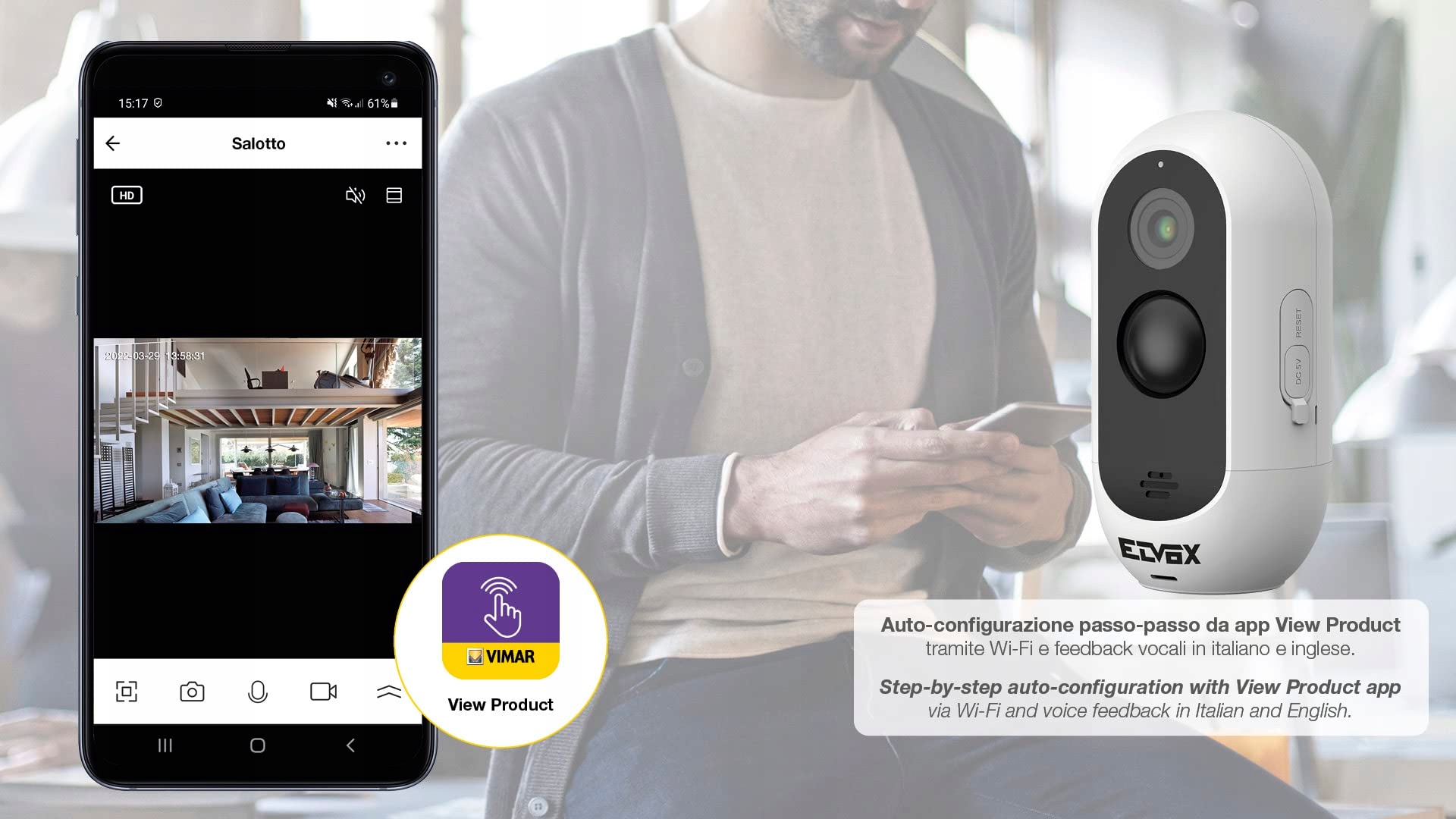 - компоненти, що містяться : vimar 46240.024b. Діяльність Wi-Fi Full-HD-камера, IP65 Зсередини/зовні, виявлення руху та надсилання сповіщень