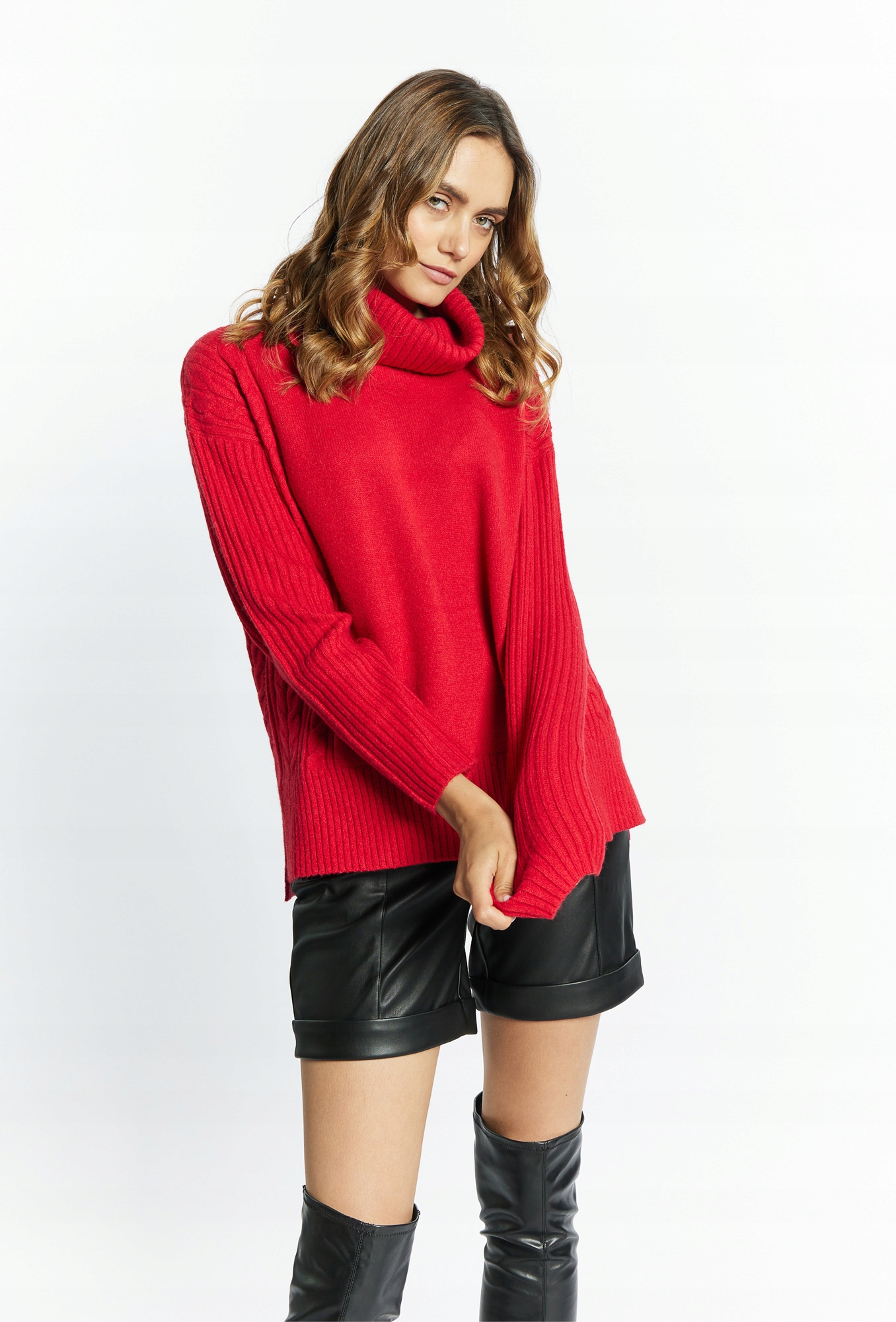 - Жіноча водолазка з трохи довшою назад. Гольф з цікавим переплетенням, довгими рукавами та невеликими щілинами збоку. Светр, виготовлений з приємної до сенсорної тканини, він чудово працює в більш прохолодні дні. Модель на малюнку висотою 177 см і представляє розмір p.