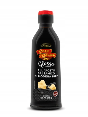 Крем з бальзамічним оцтом MONARI FEDERZONI — це густа кремова есенція з інтенсивним смаком бальзамічного оцту та виразною солодкістю. Насичений колір і в'язка консистенція роблять його ідеальним для заливки салатів і прикраси м'ясних, рибних і сирних страв. Це універсальна добавка, яка додає елегантності та неповторного смаку кожній страві італійської кухні та не тільки.
